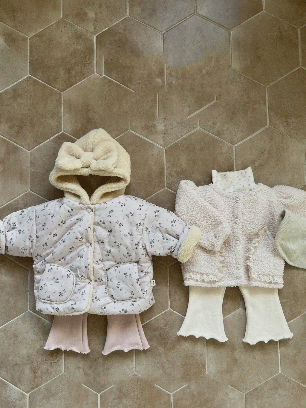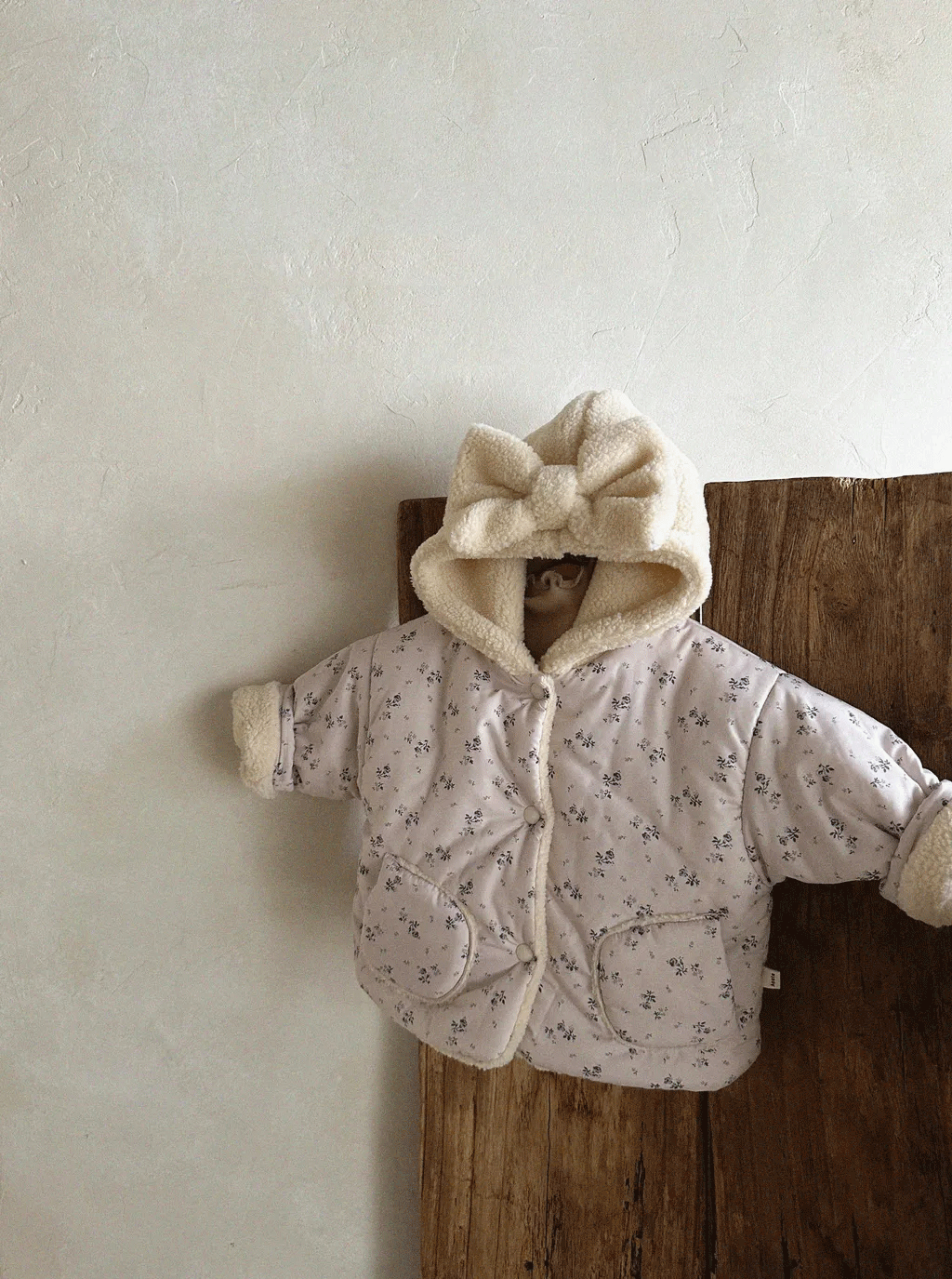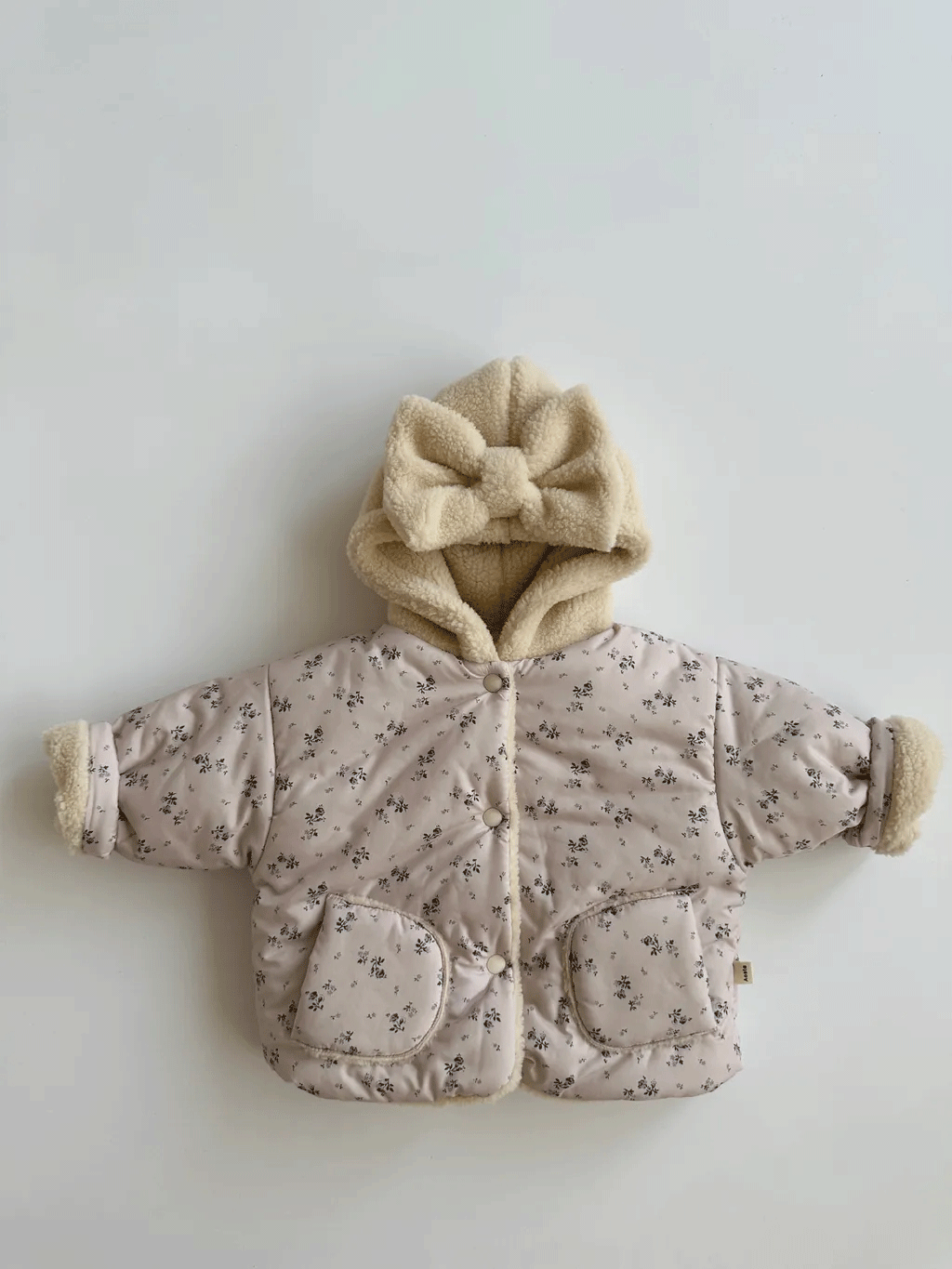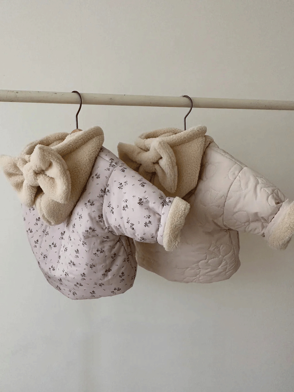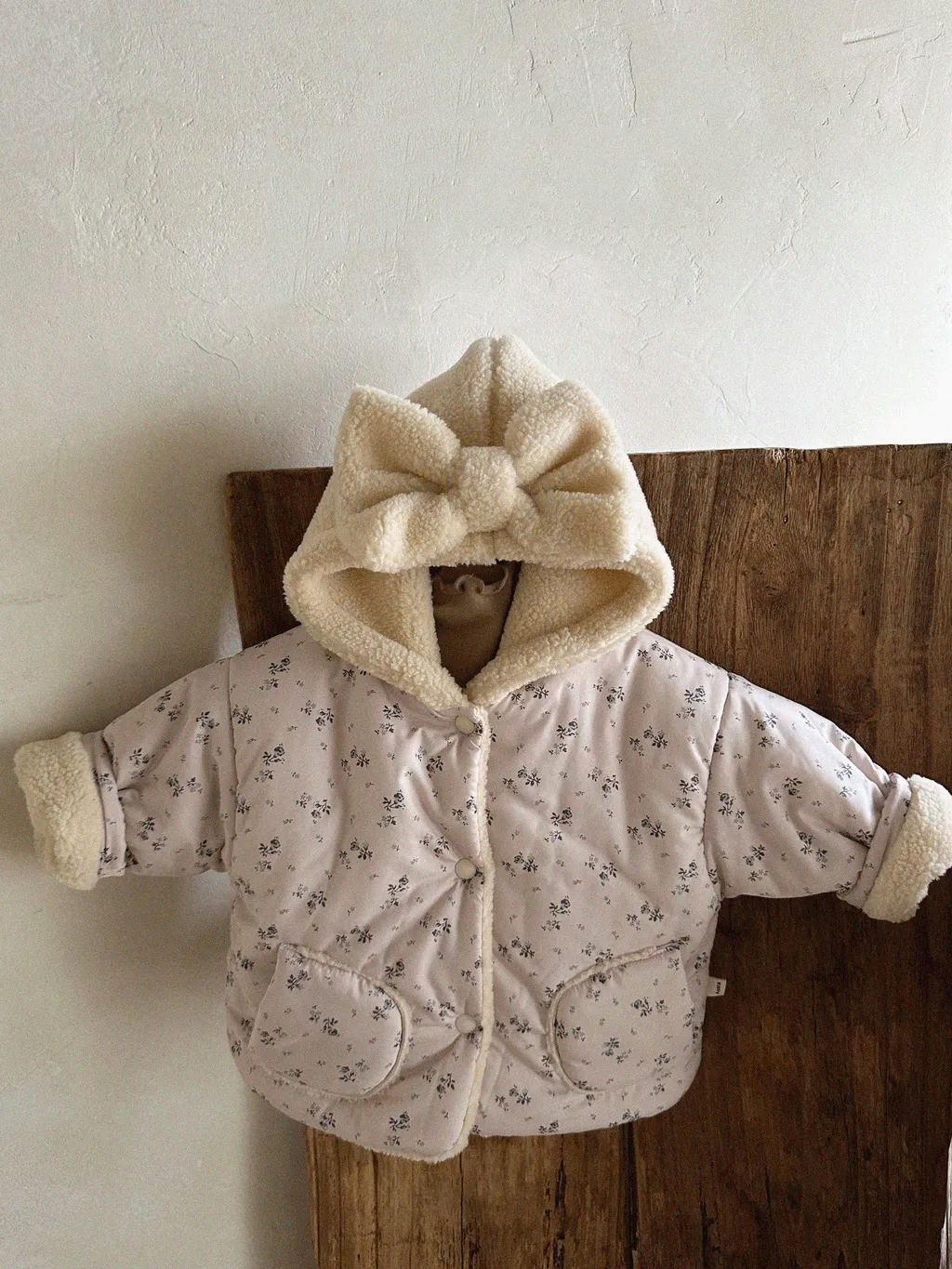 Ins Korean Style Autumn and Winter New Baby Girl's Thickened Hooded Cotton-padded Jacket Girl's Lamb Fleece Floral Cotton-padded Jacket
