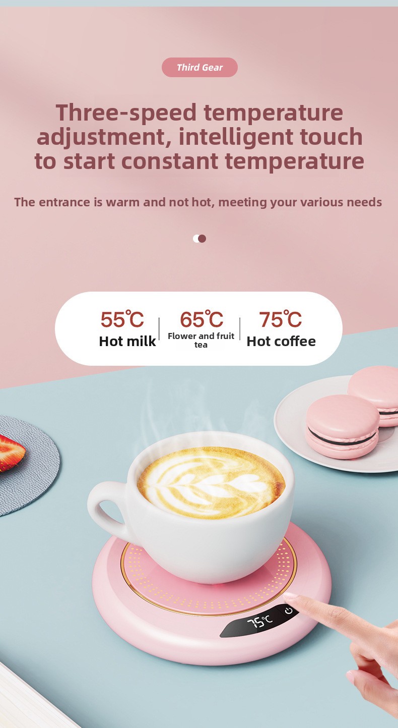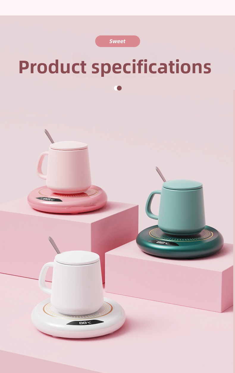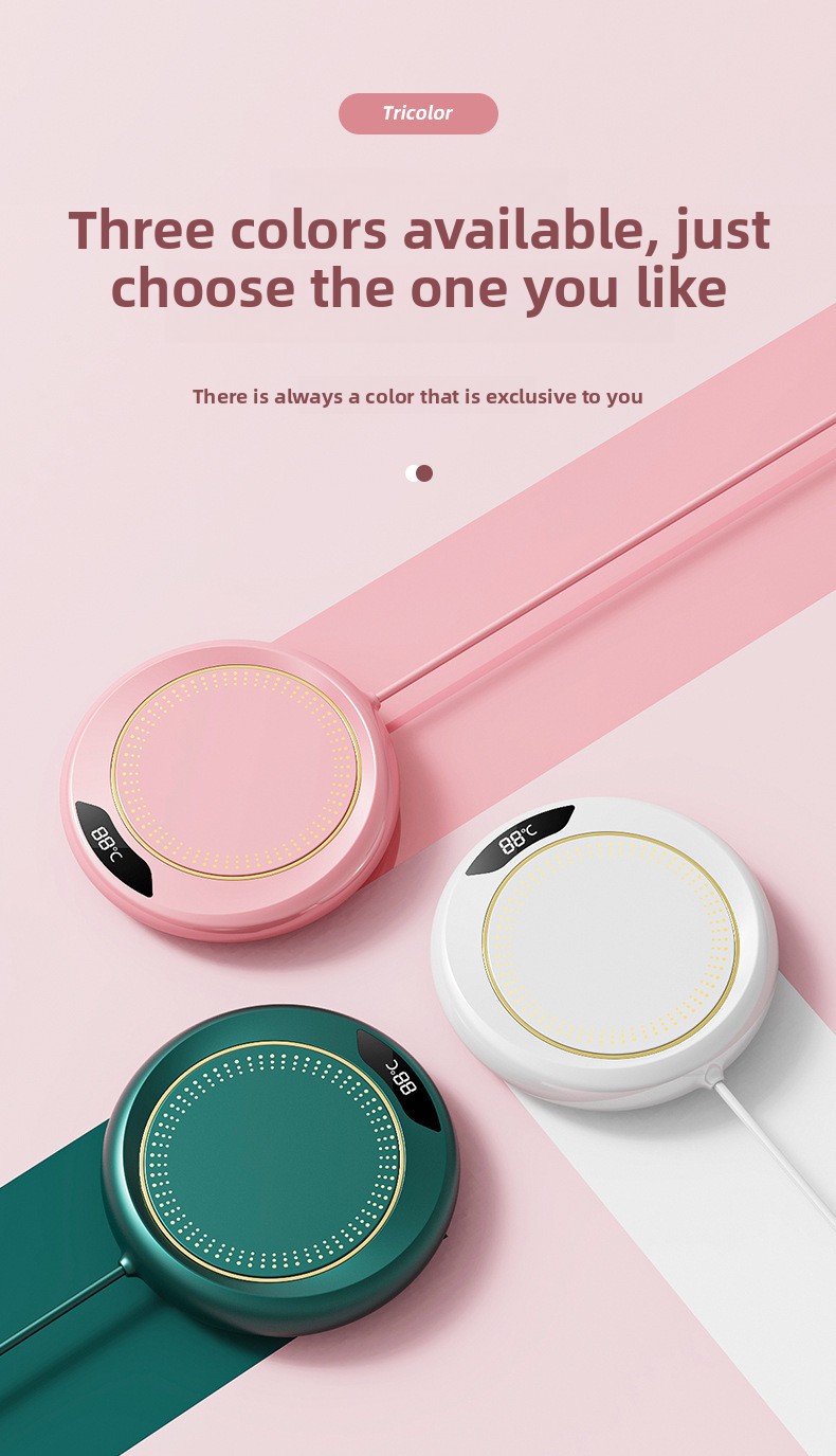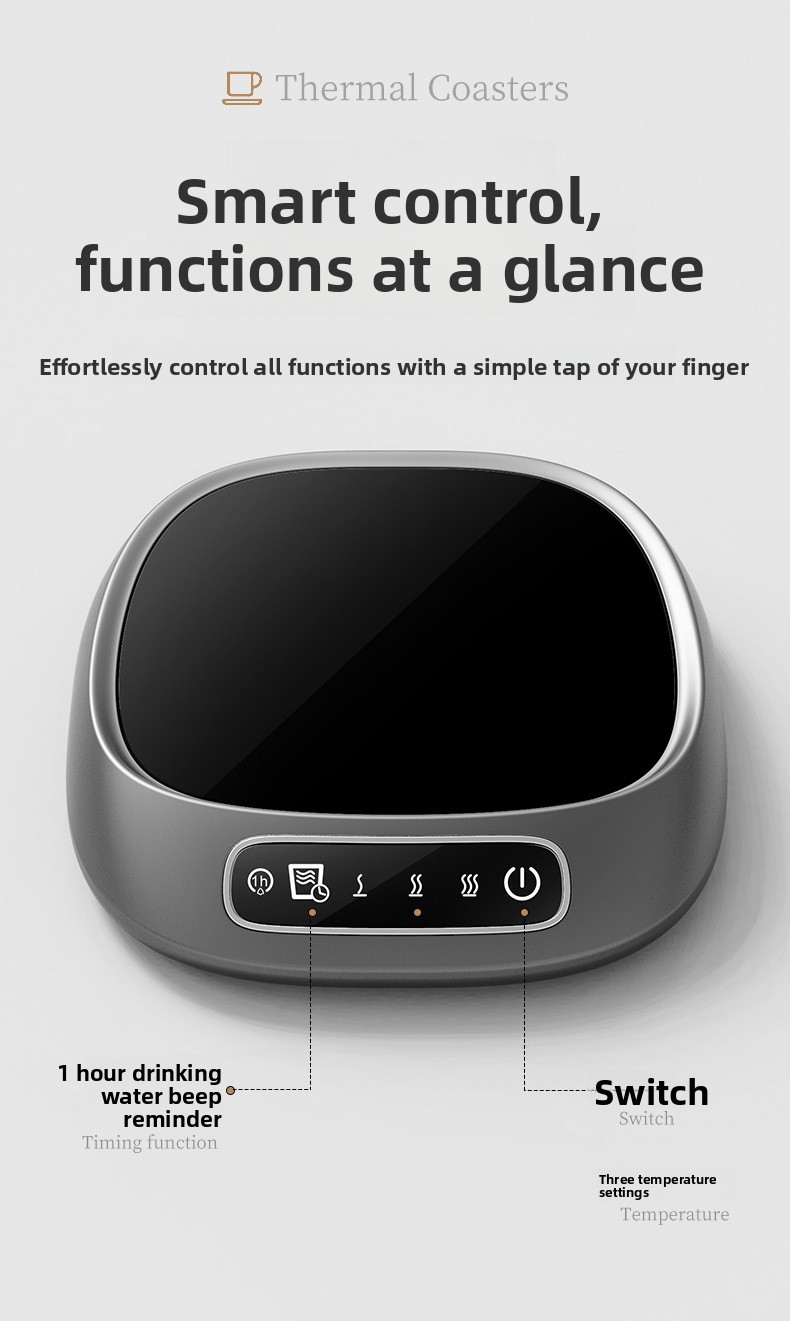 Intelligent Heating: USB-powered electric heating coaster with adjustable temperature settings (55°C/65°C/75°C).