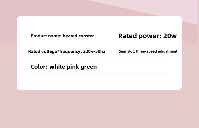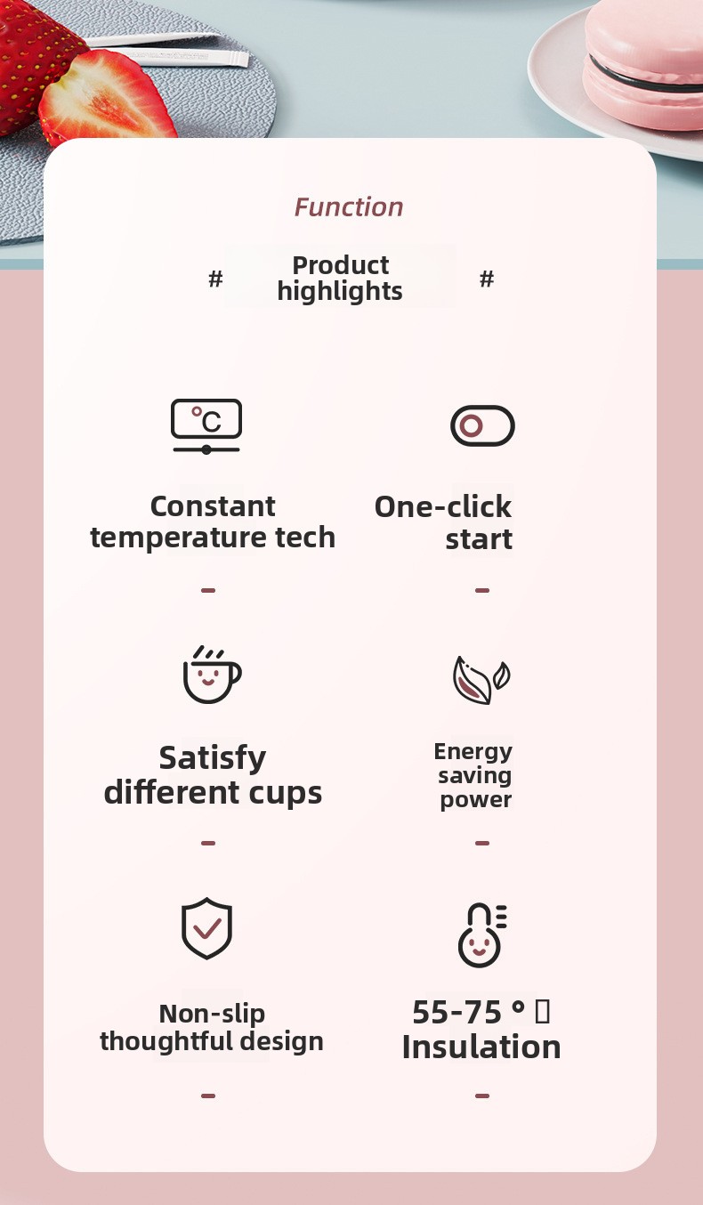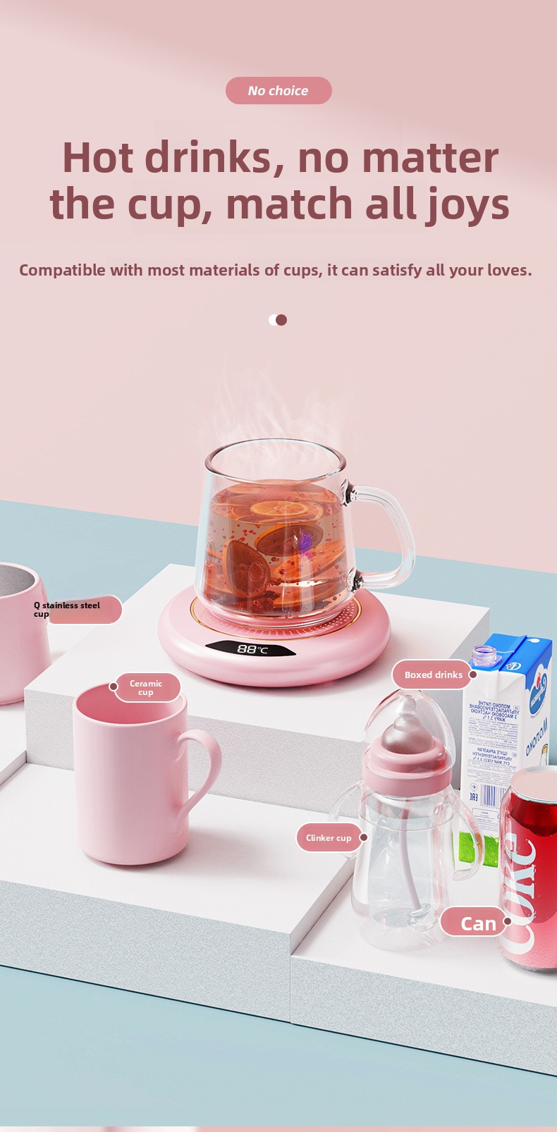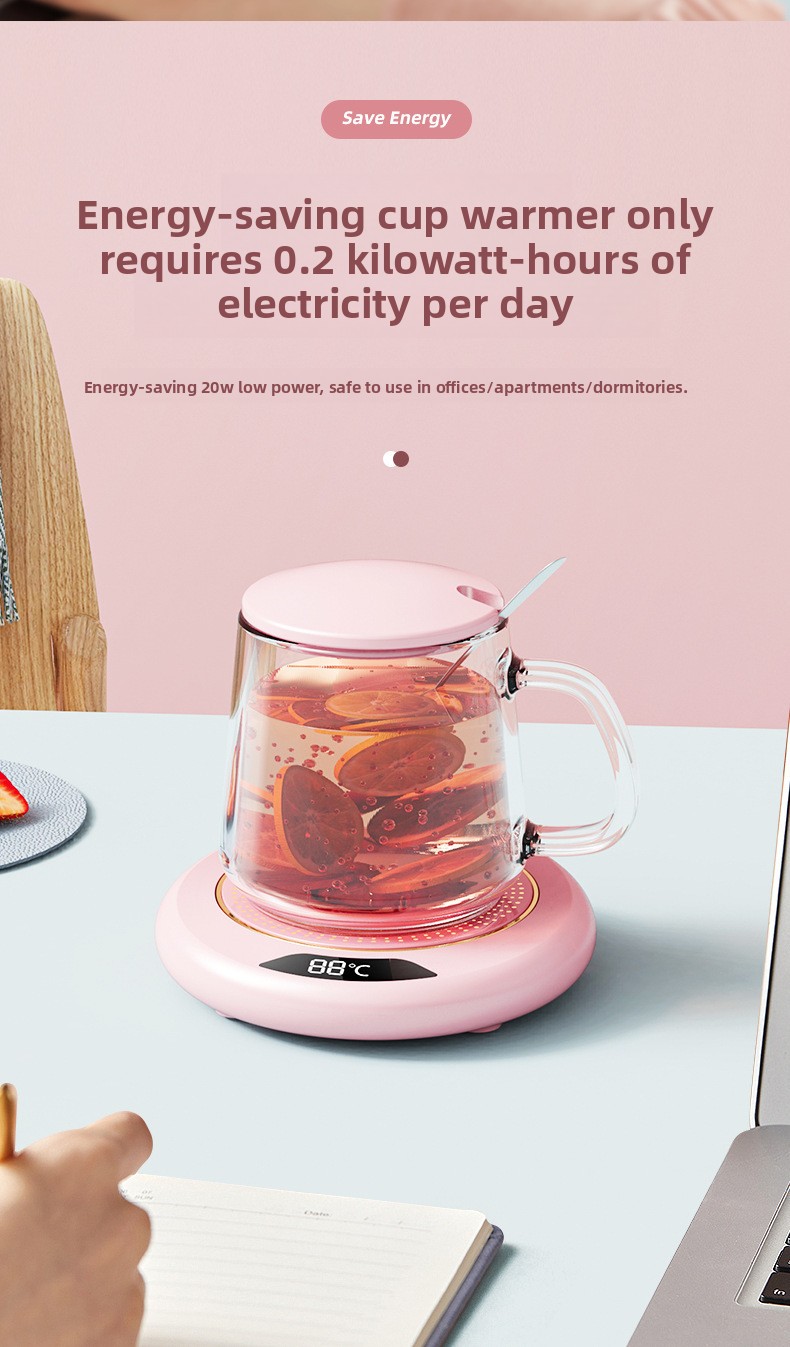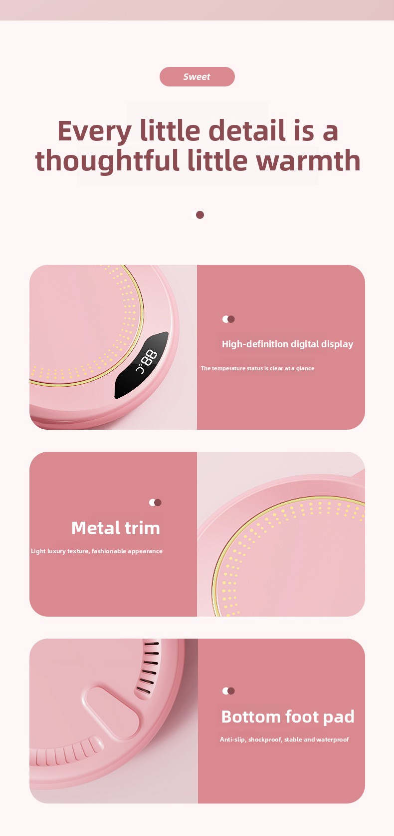 Intelligent Heating: USB-powered electric heating coaster with adjustable temperature settings (55°C/65°C/75°C).