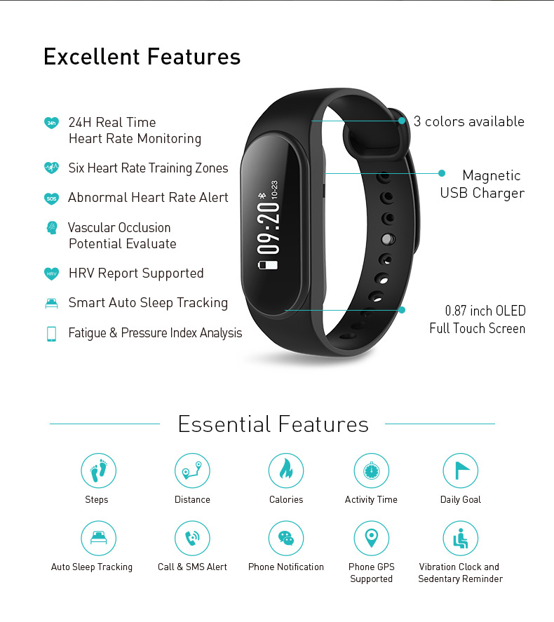 J-Style Smart OLED Fitness Tracker with Heart Rate Monitor