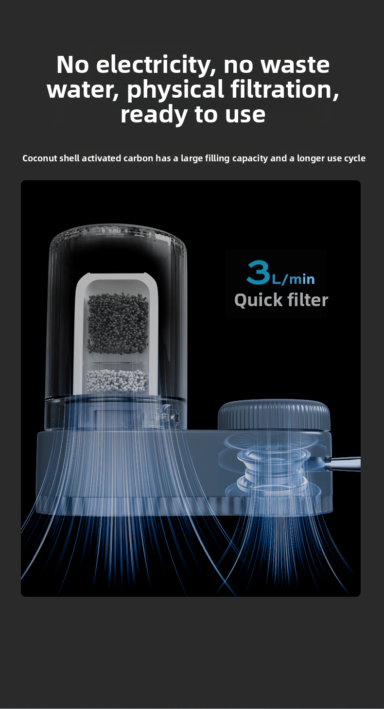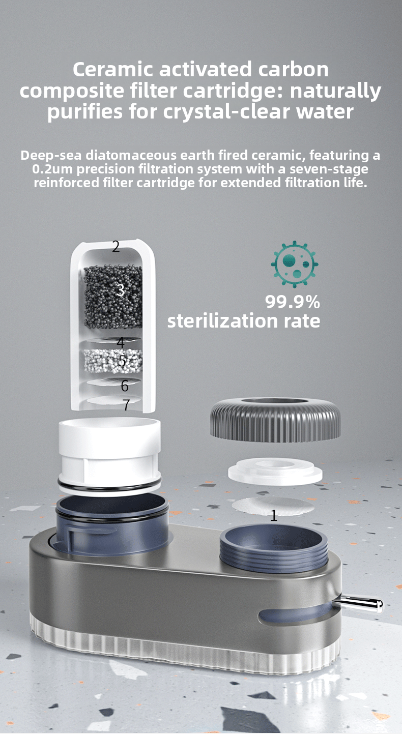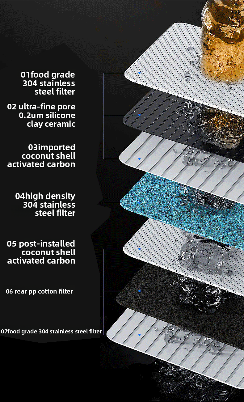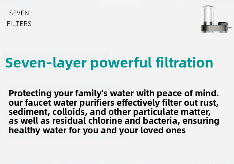 Multi-Stage Filtration: 7 levels of filtration ensure thorough purification, removing sediment, chlorine, heavy metals, rust, and bacteria.