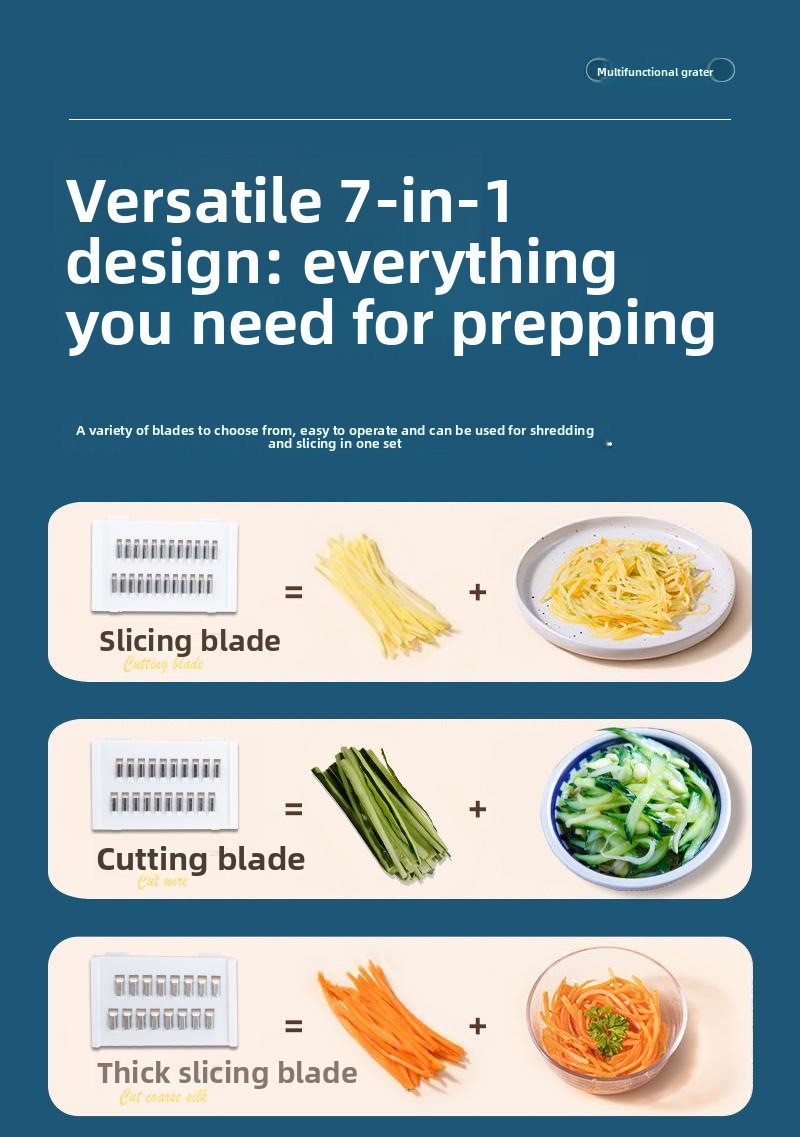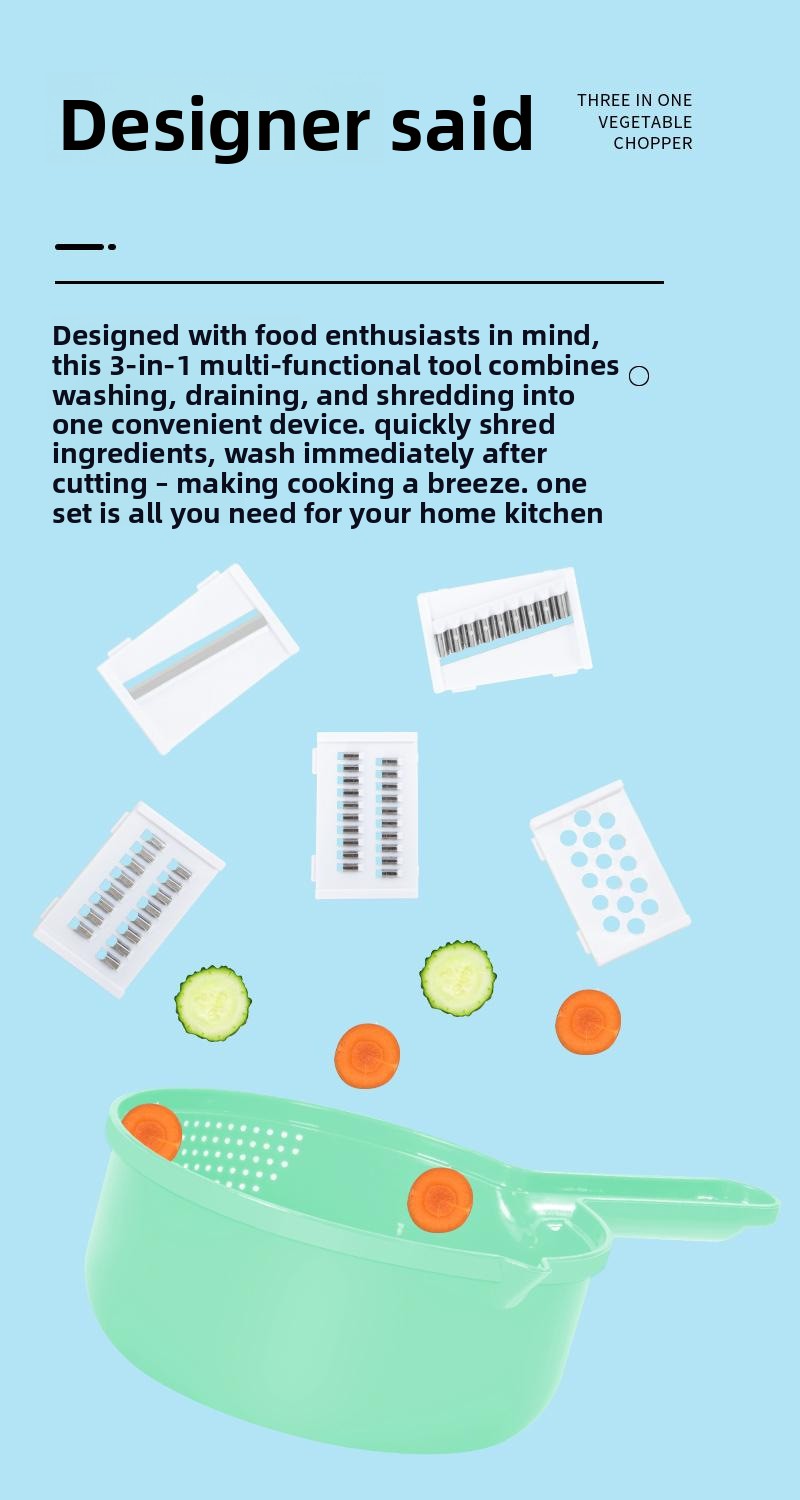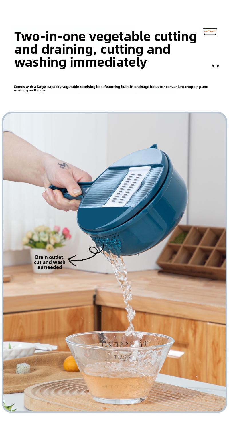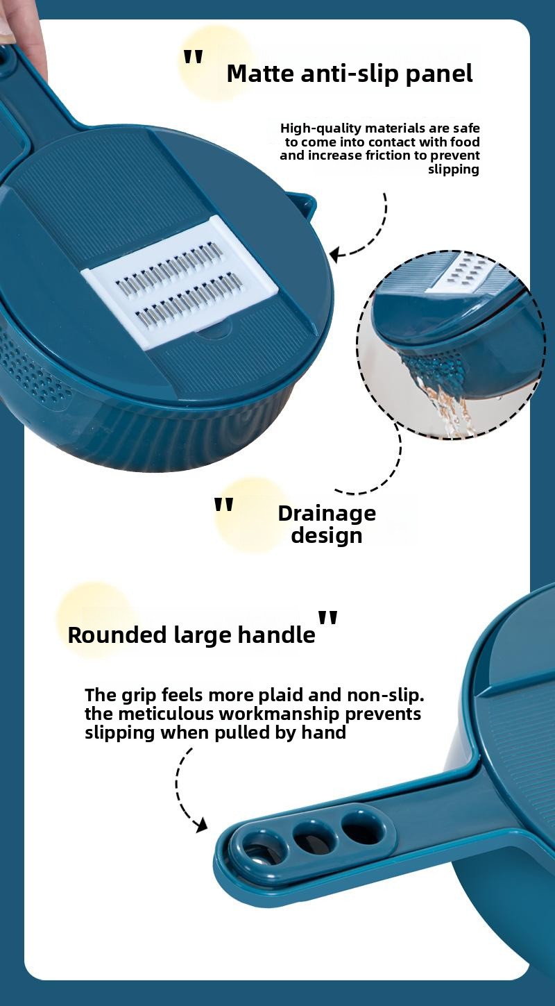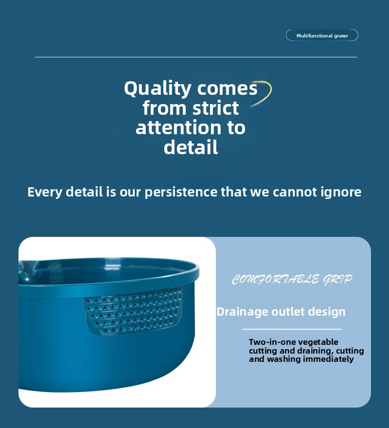 Multifunctional Design: Combines shredding, slicing, and draining functions for versatile kitchen use.