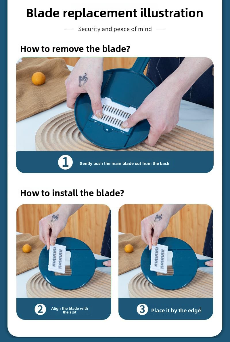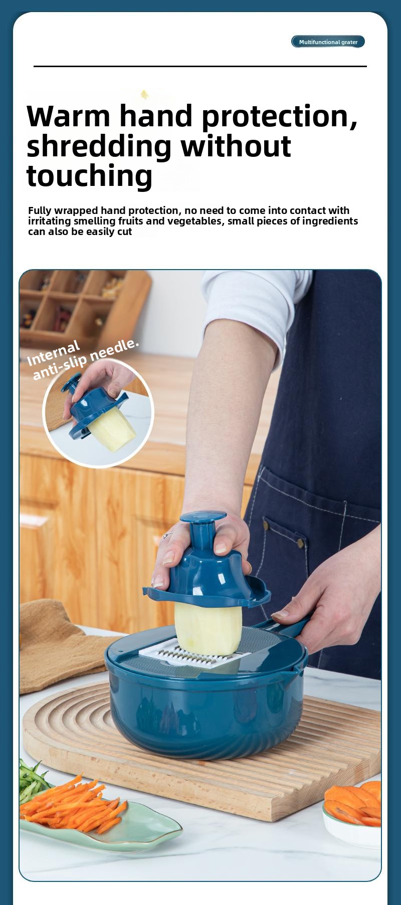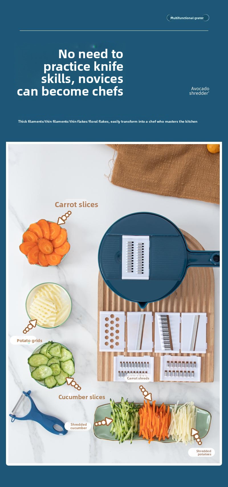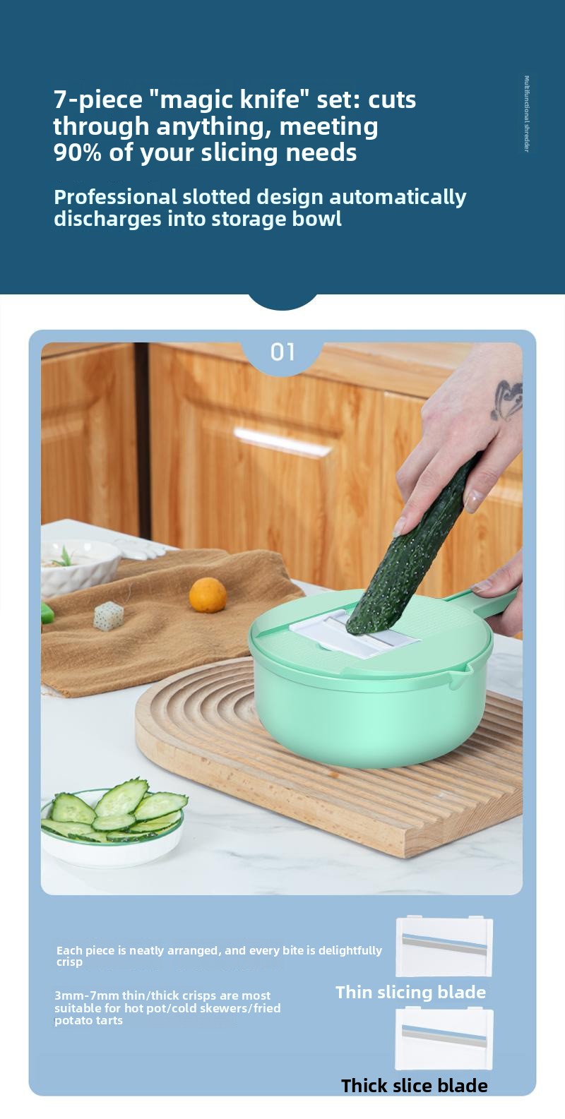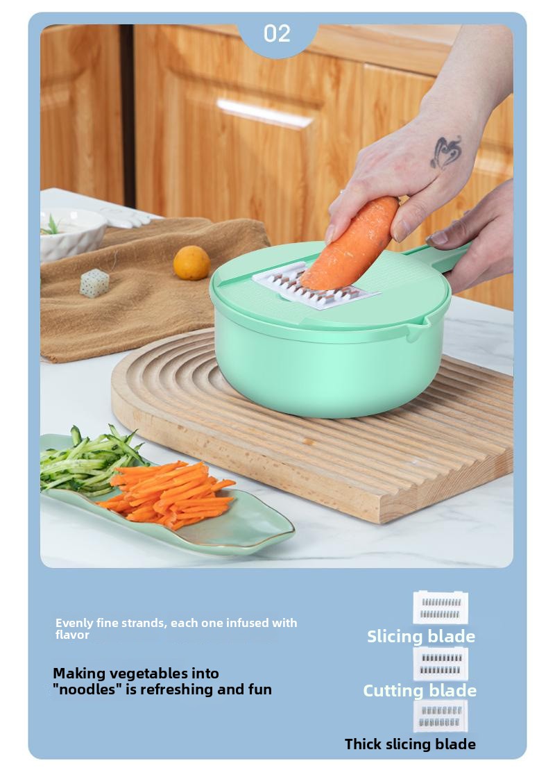 Multifunctional Design: Combines shredding, slicing, and draining functions for versatile kitchen use.