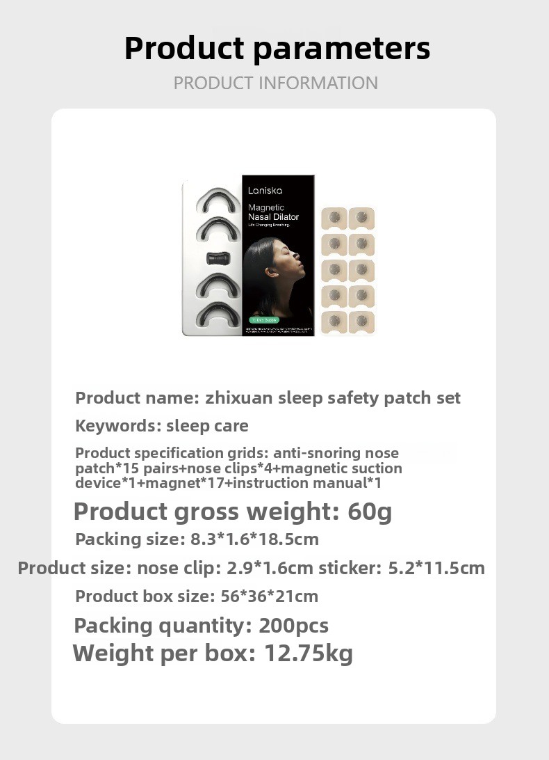 Components: Anti-snoring nose patch15 pairs, nasal clip4, magnetic extractor1, magnet17, instruction manual*1.