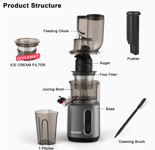 Quiet Operation - DC motor reduces noise for a peaceful juicing experience.
