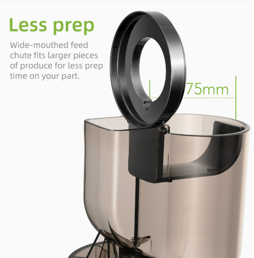 Wide Chute Design - 75mm feed chute allows whole fruits and vegetables to be juiced without pre-cutting.
