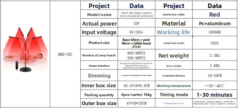 Adjustable Timer: Customizable treatment duration with timed dimming function.