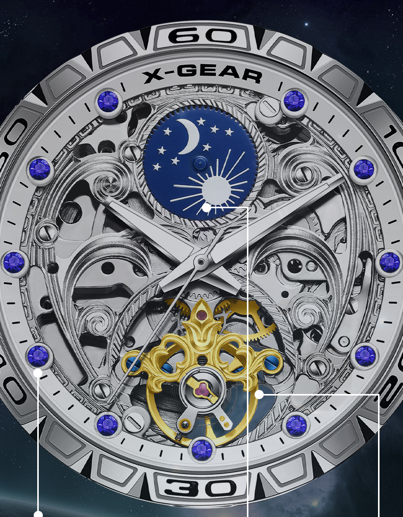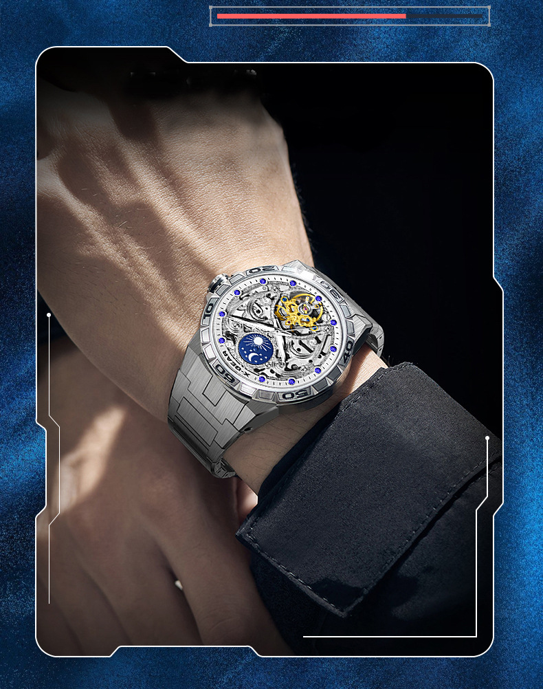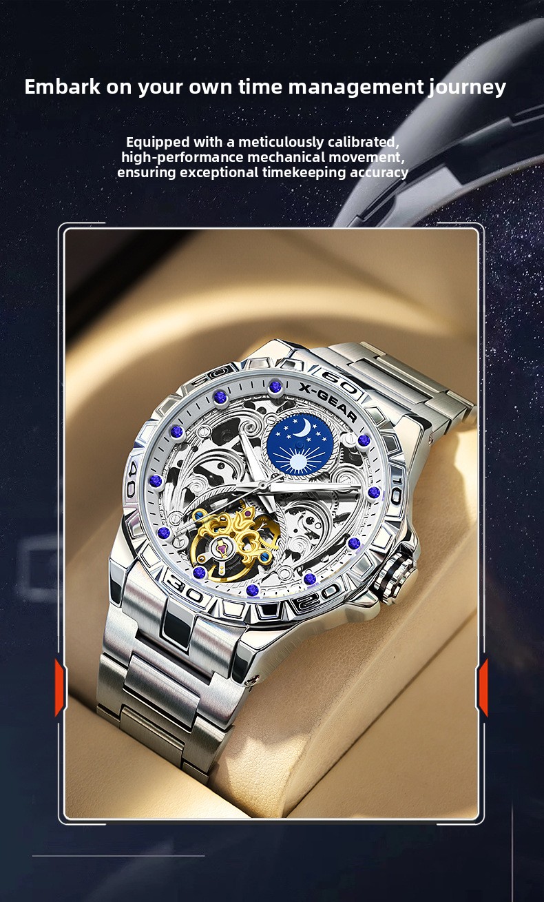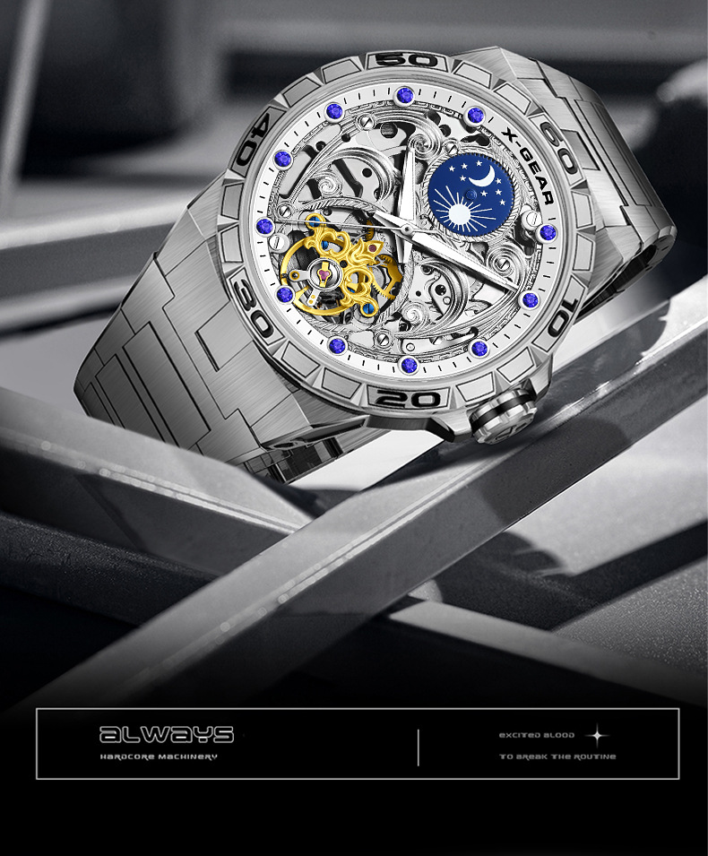 Luxury Design: Stylish mechanical watch with tourbillon feature for a high-end look.