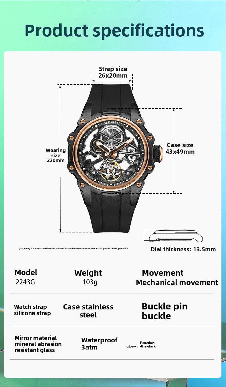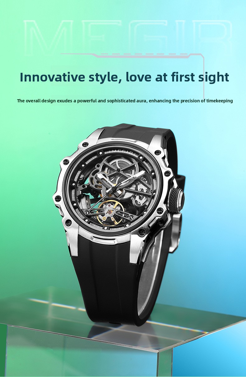 Megir Men's Automatic Mechanical Watch Stainless Steel Case Full Cut-Out Dial