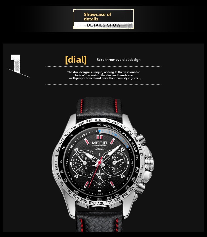 Luminous Dial: Features a fake three-eye luminous design for easy reading in low light.