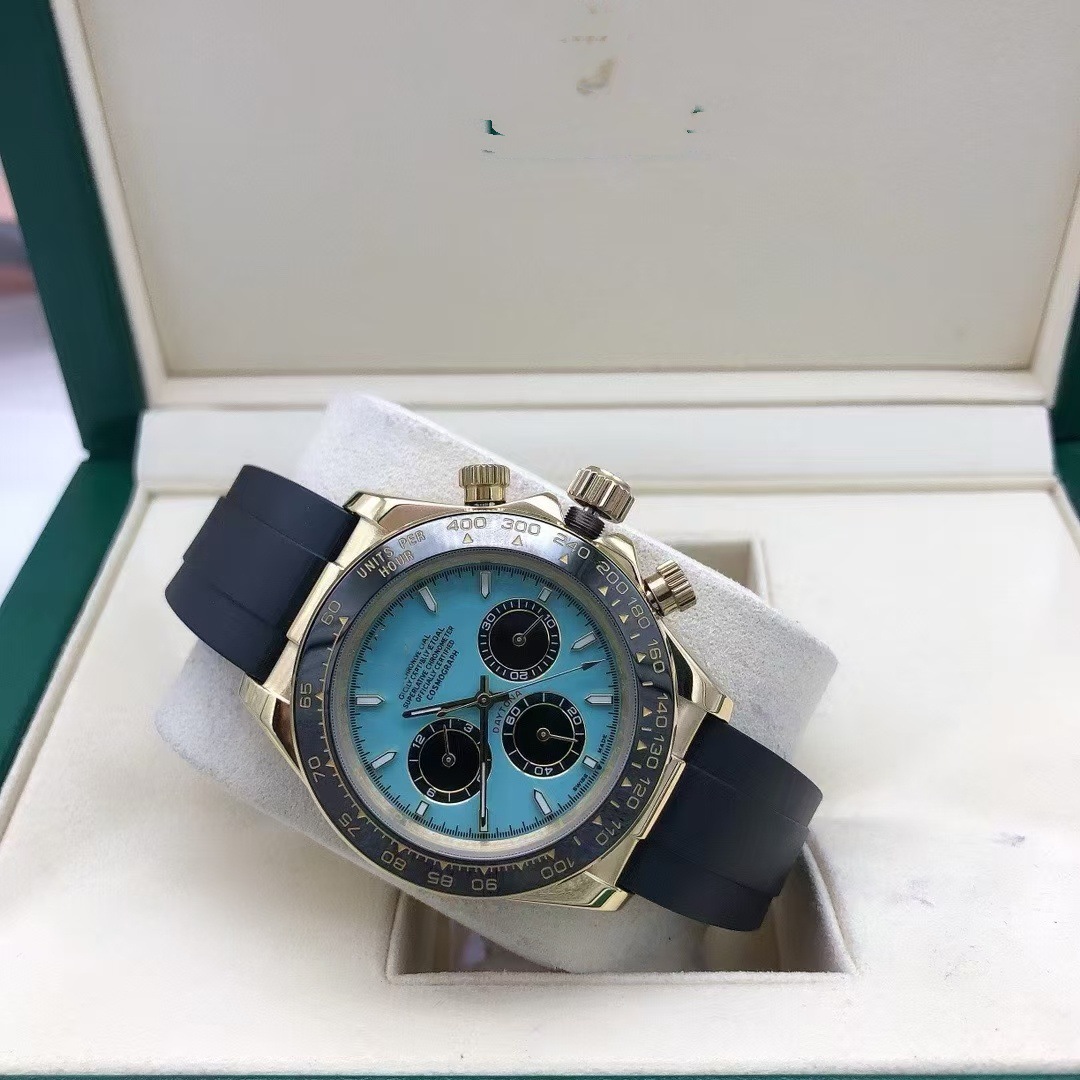 - Daytona Style: Classic blue dial with chronograph design