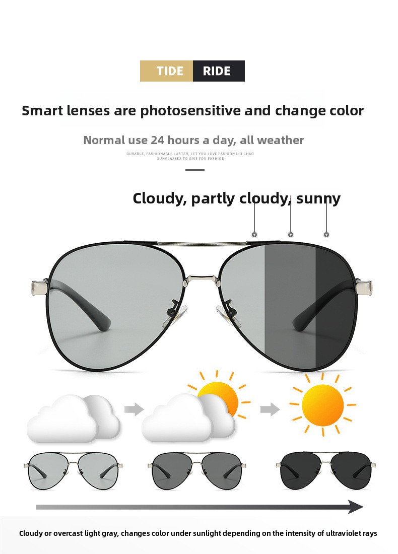 Metal Resin Polarized Photochromic Sunglasses for Men