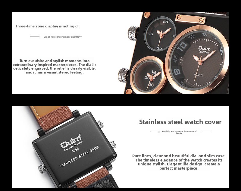 Multi-Function Three-Movement: Equipped with three precision quartz movements for enhanced functionality.