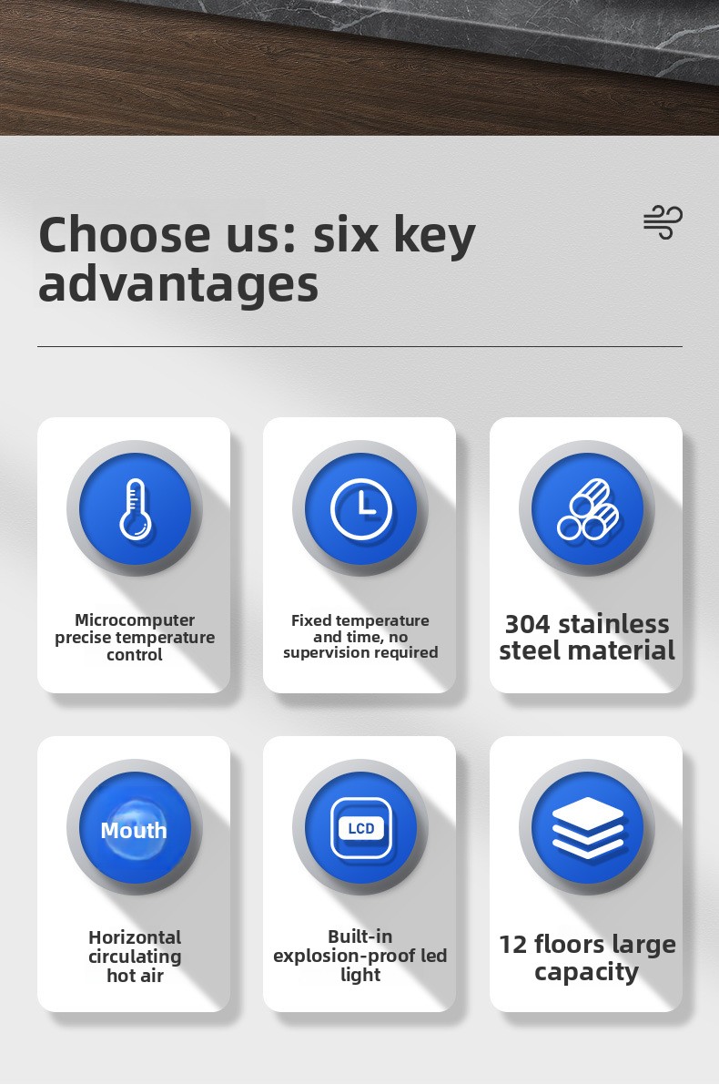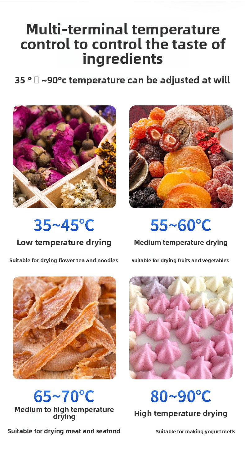 Adjustable Temperature - 30-90°C range with 5 heat settings for optimal drying.