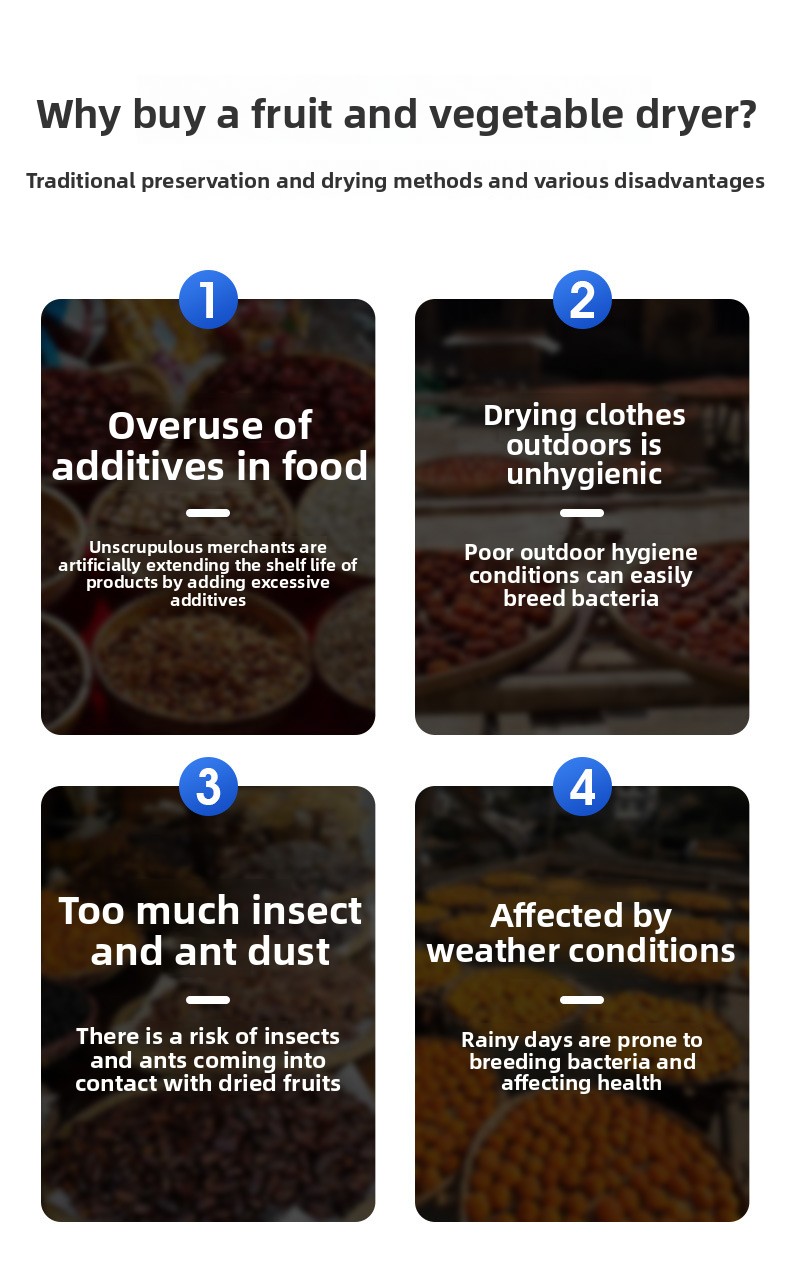 Multifunctional - Dehydrates fruits, vegetables, medicinal herbs, and pet snacks.
