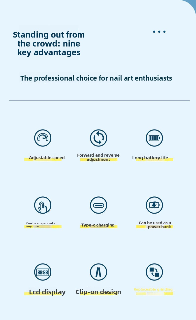 High Speed: 45000 RPM for efficient nail polishing and removal.