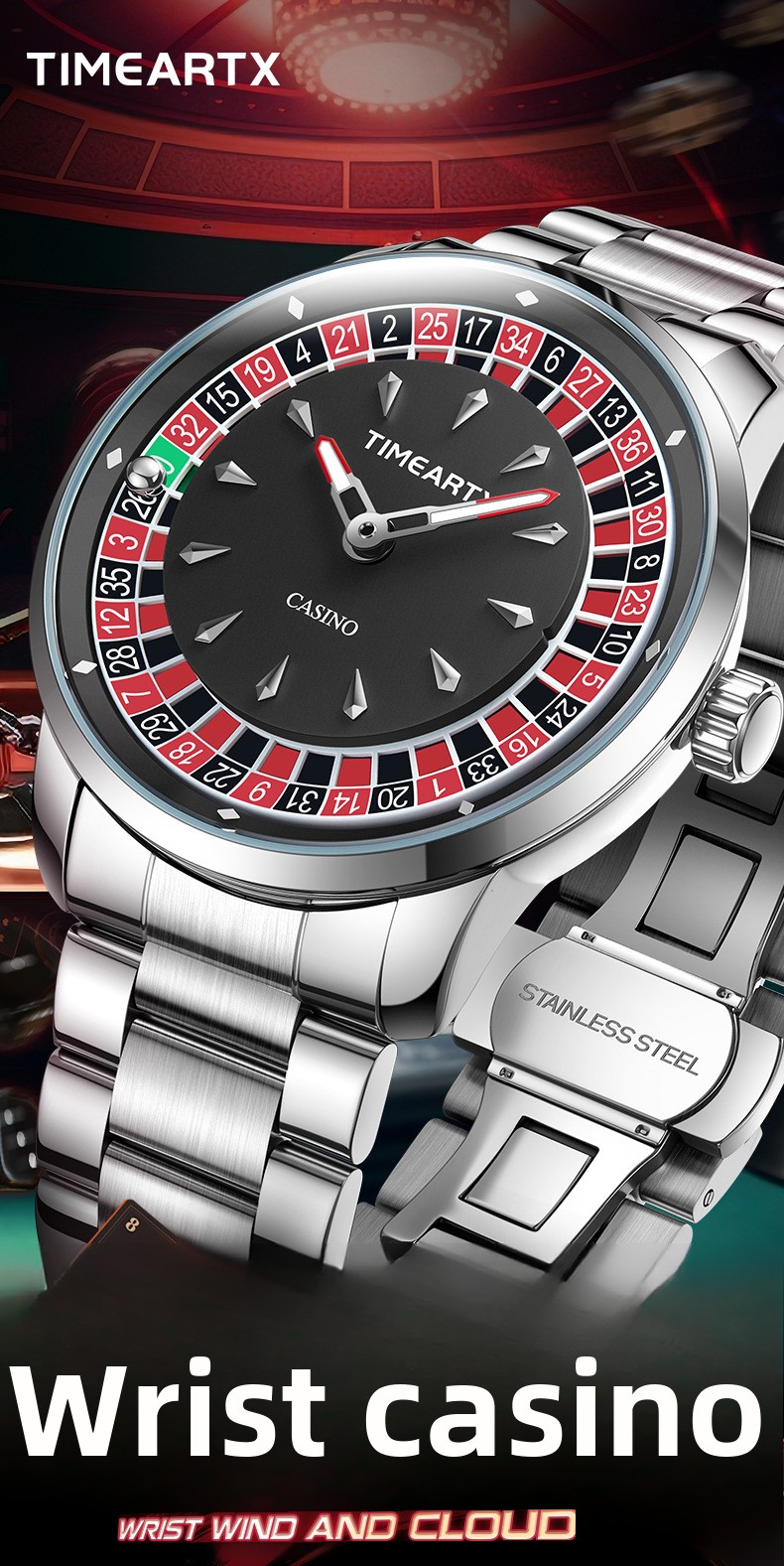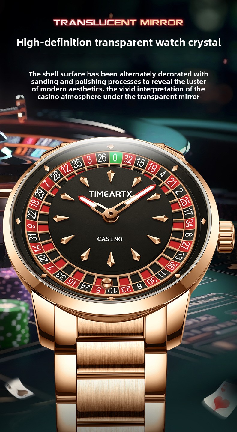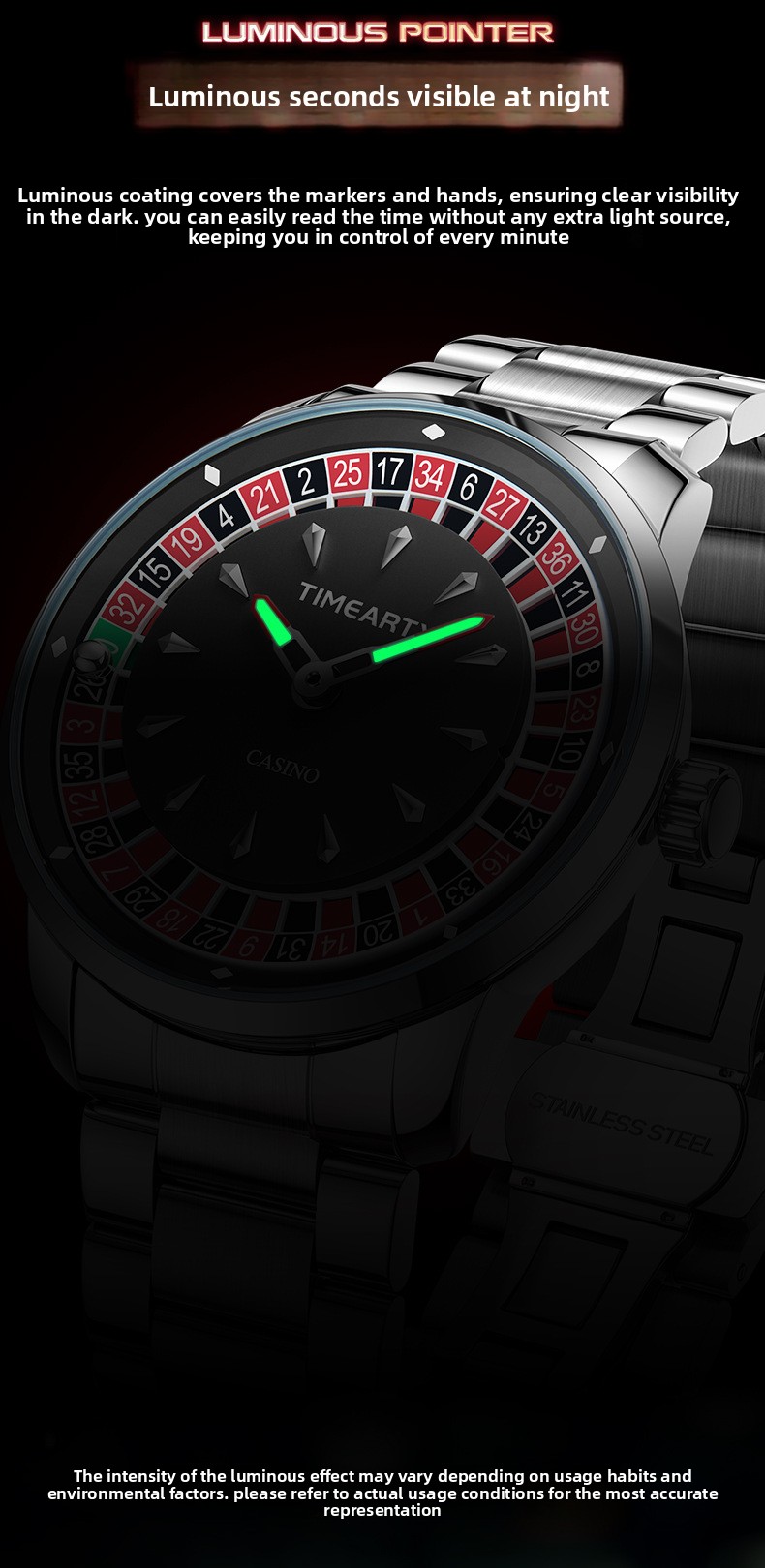 Luminous Display: Features a casino roulette design with luminous hands for clear visibility in low-light conditions