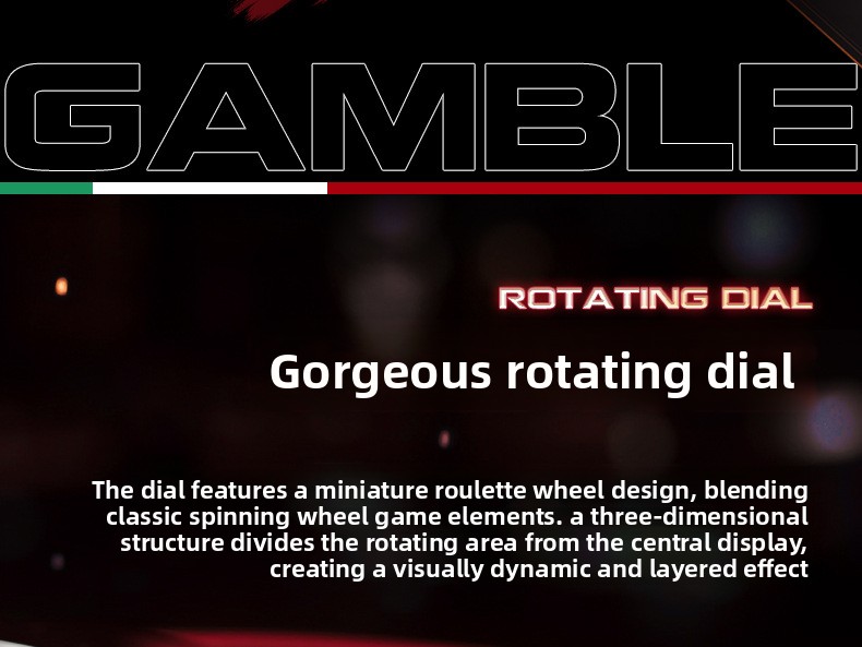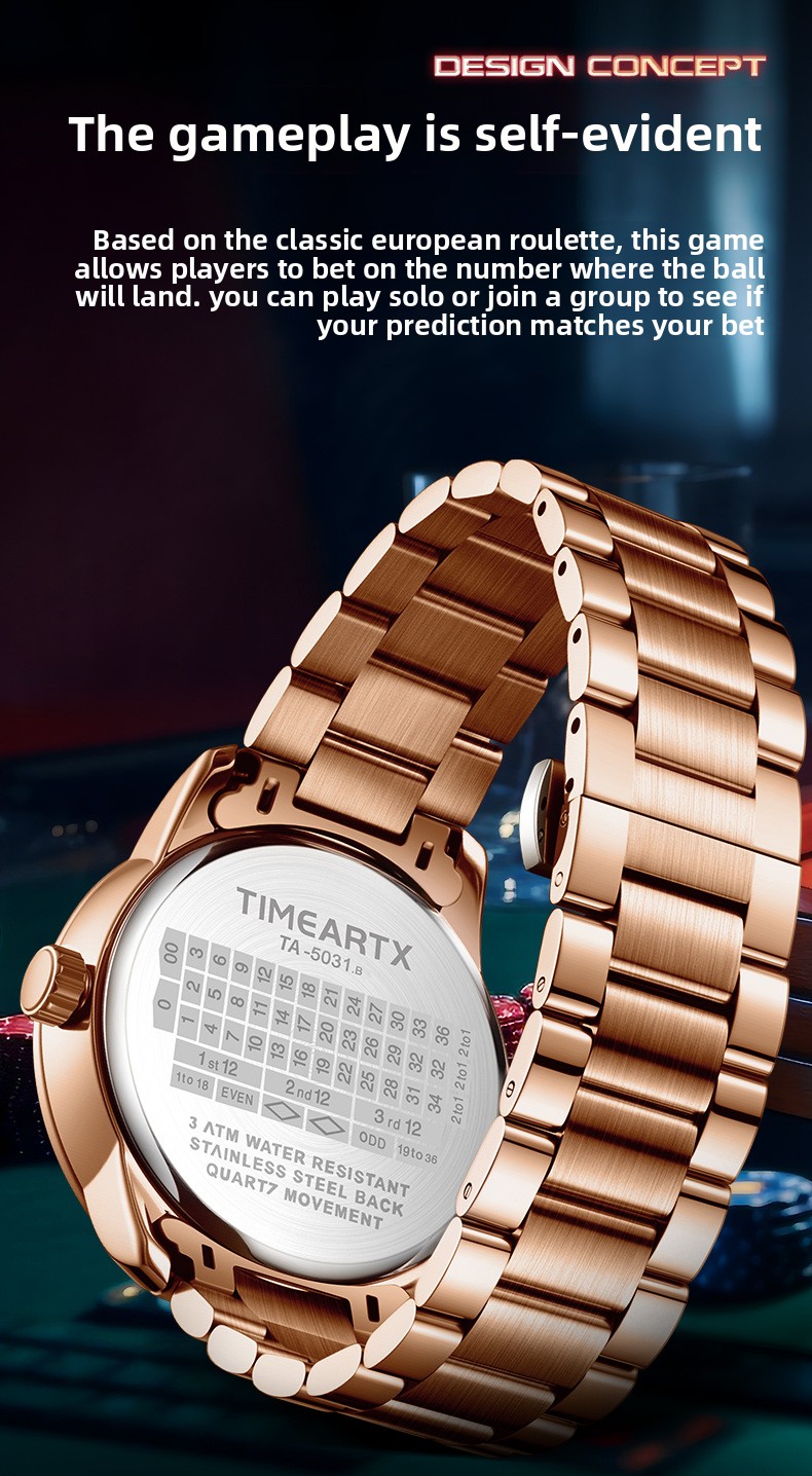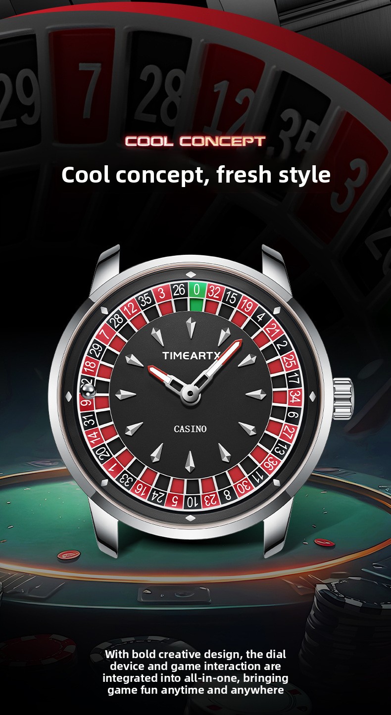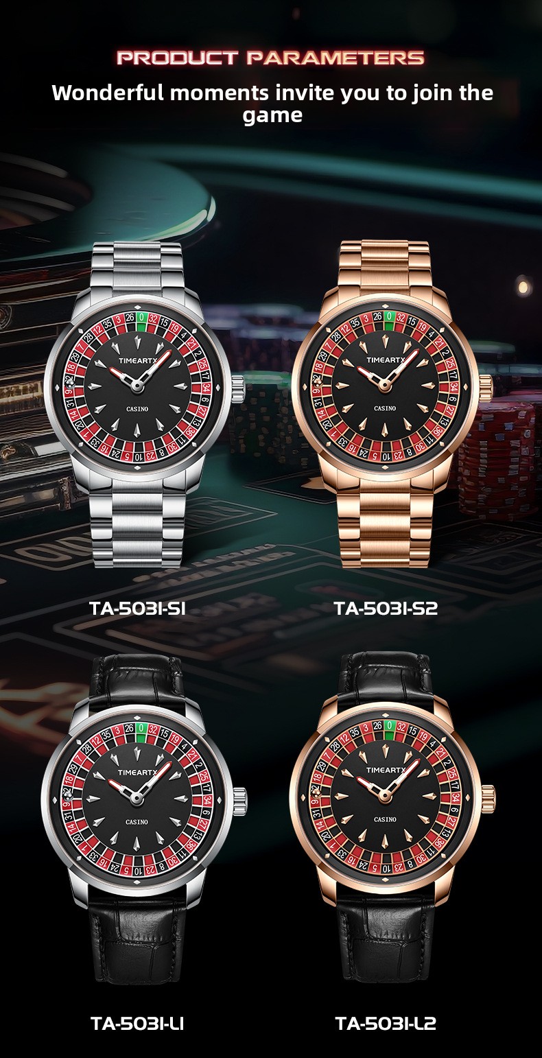 Luminous Display: Features a casino roulette design with luminous hands for clear visibility in low-light conditions