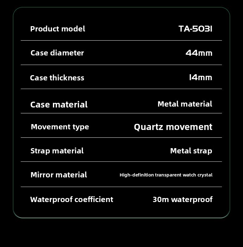 Water Resistance: 30M waterproof capability suitable for daily wear and minor water exposure