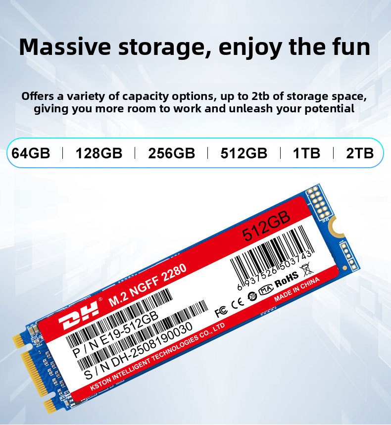 Compact Design: M.2 2280 form factor (22mm x 80mm) with a thickness of 3.8mm, lightweight at 38g.