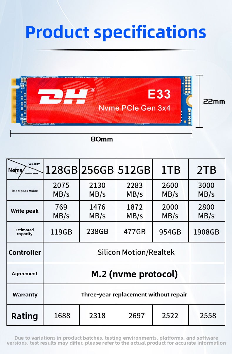High-Speed Performance: NVME protocol and PCIe 3.0 interface for fast data transfer (read: 2200-3000 MB/s,
