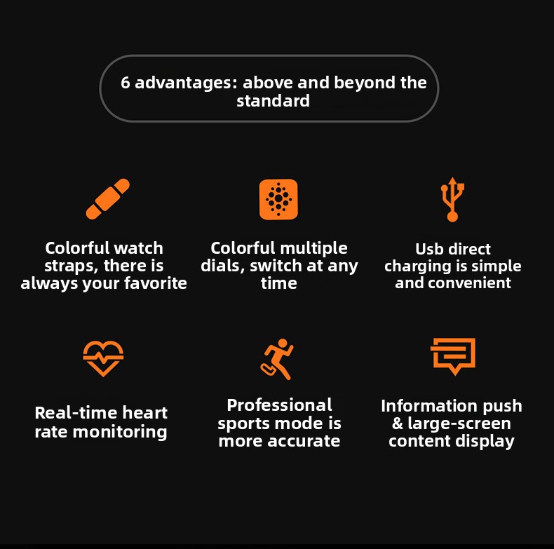 Functions: Step counting, social entertainment, sleep monitoring, waterproof, photography, heart rate monitoring, blood pressure measurement