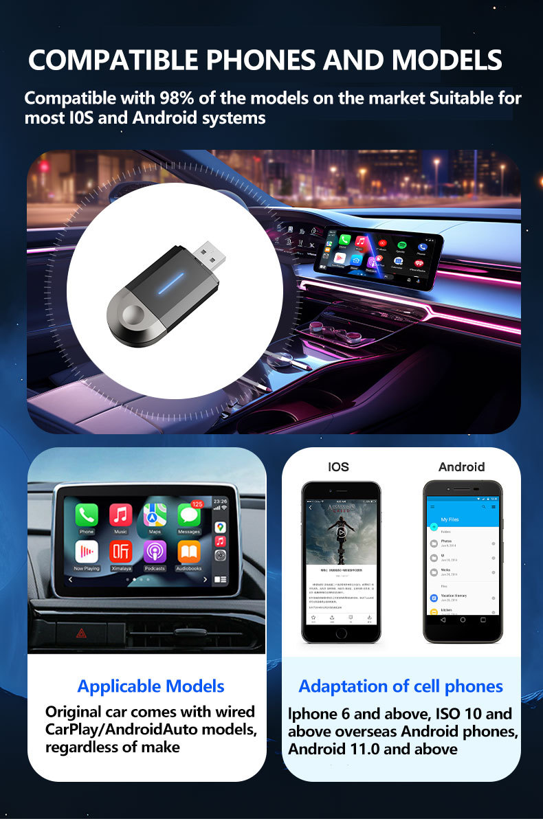 Wireless CarPlay: Convert wired CarPlay to wireless, providing a seamless connection.