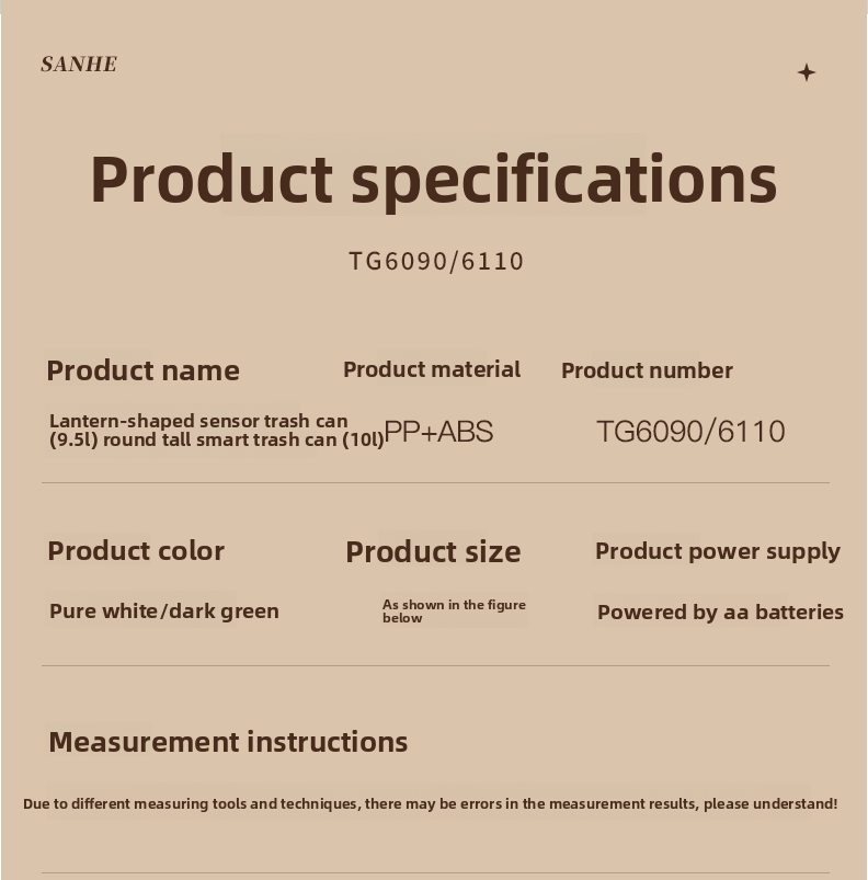 Shuangyi Smart Sensor Trash Can with Delayed Lid
