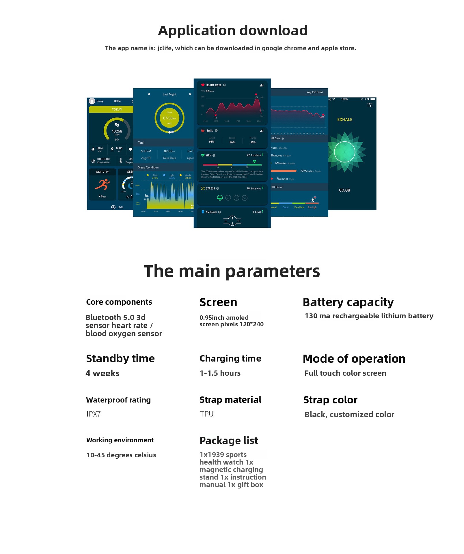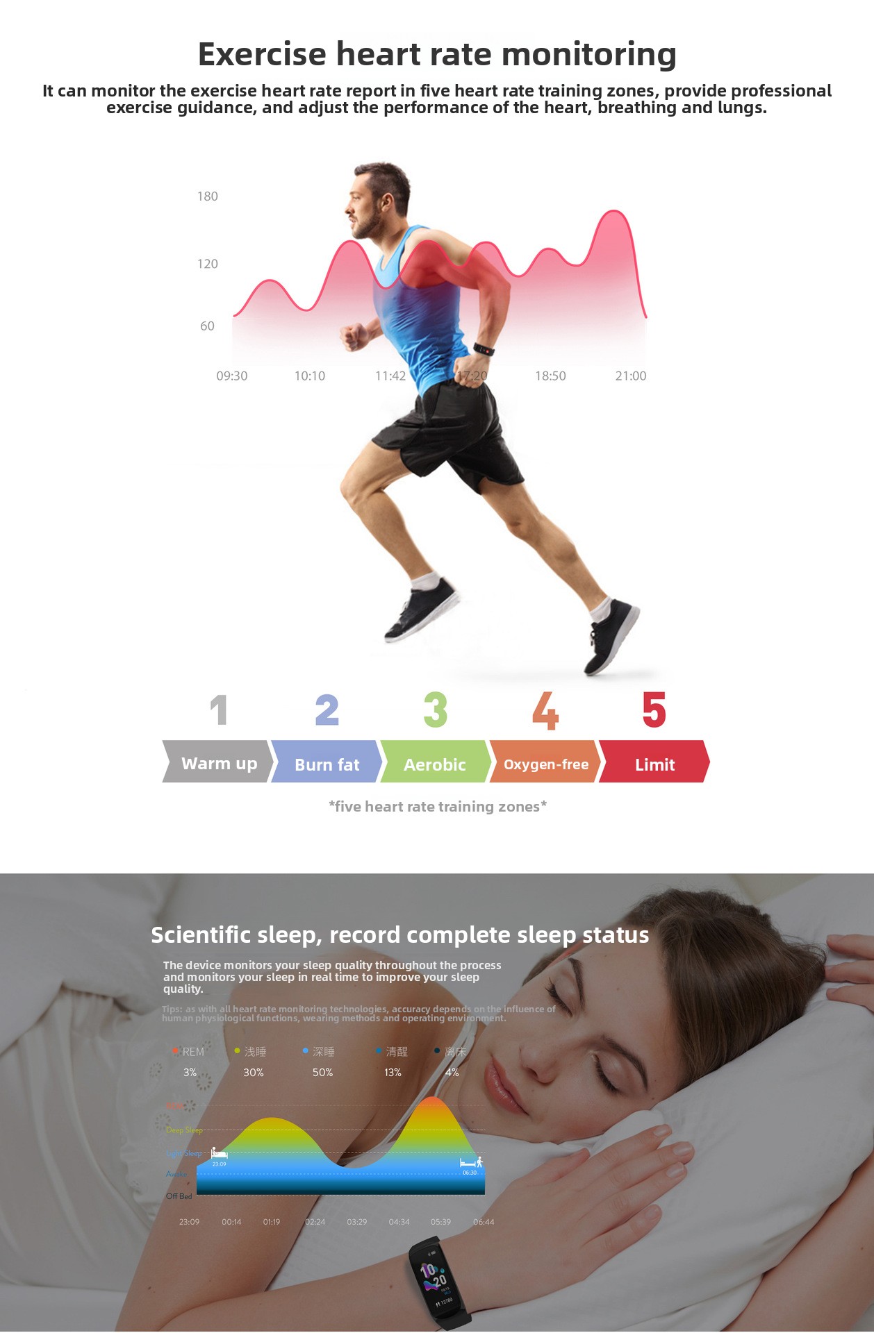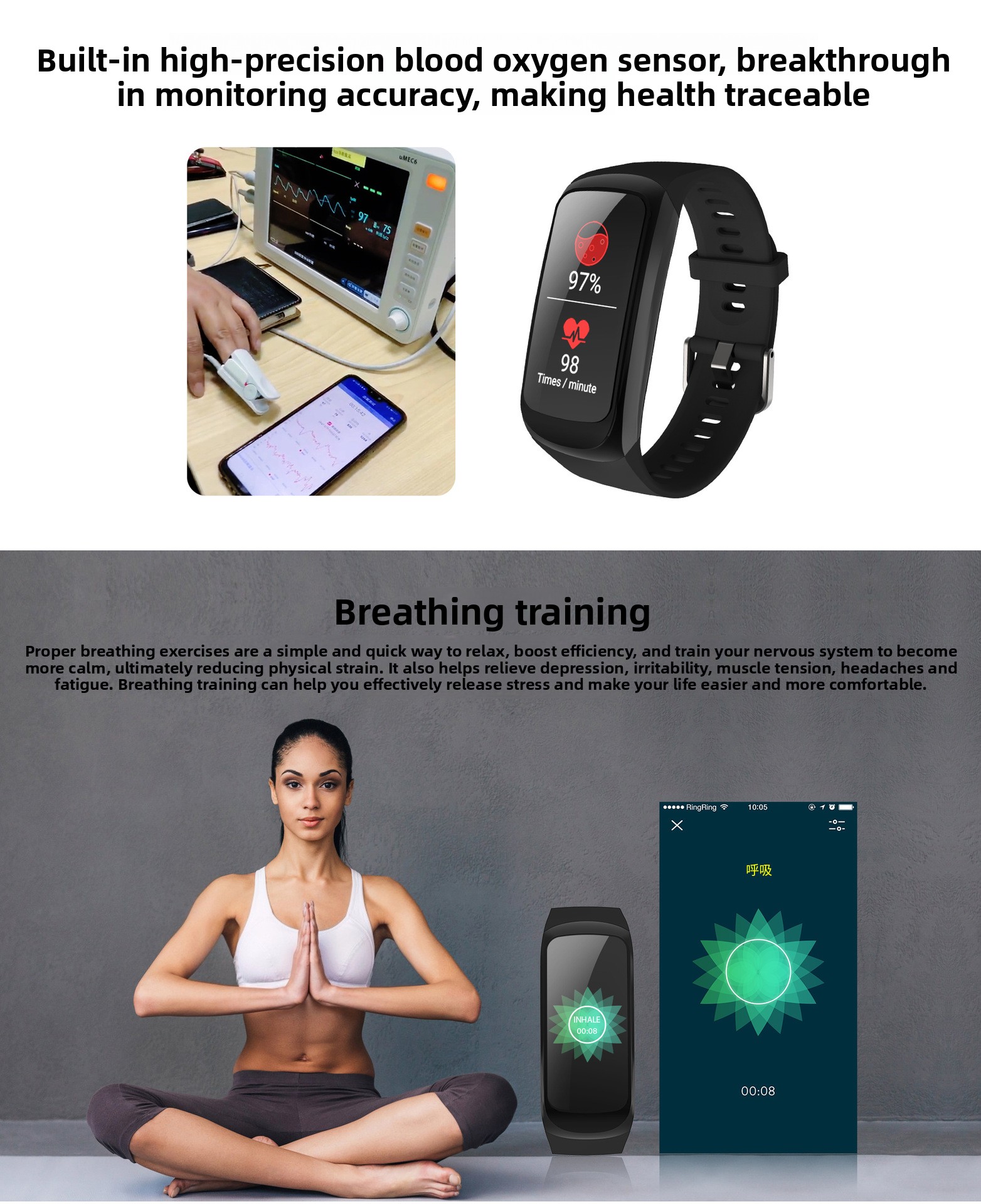 Multi-Functionality: Includes step counting, blood pressure measurement, sleep monitoring, blood oxygen detection, and smart reminders.