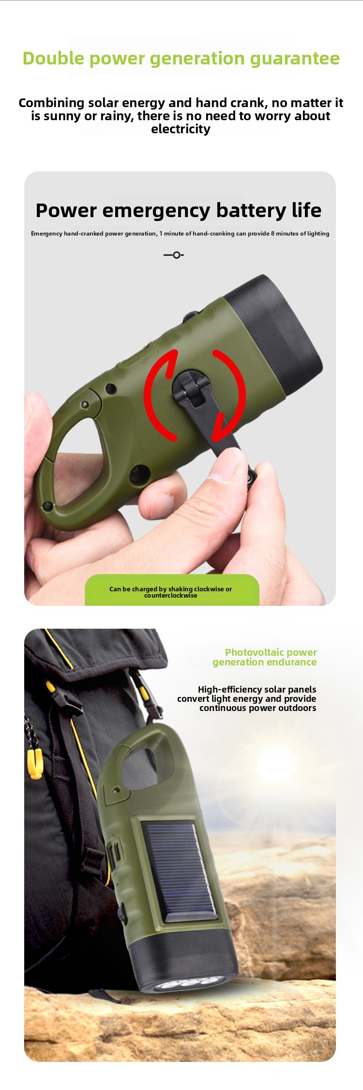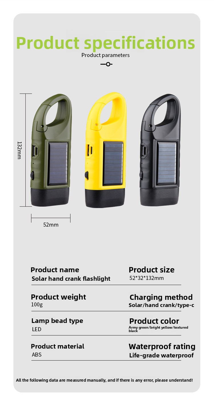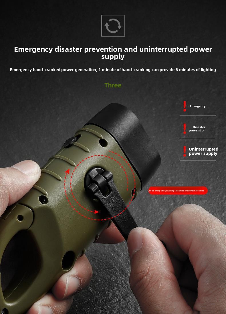 Long Runtime: Hand-cranking for 1 minute provides ~8 minutes of light; continuous use up to 120 minutes.