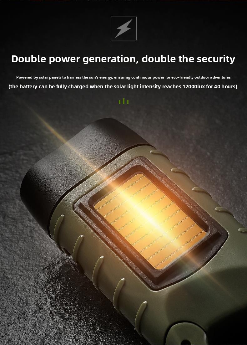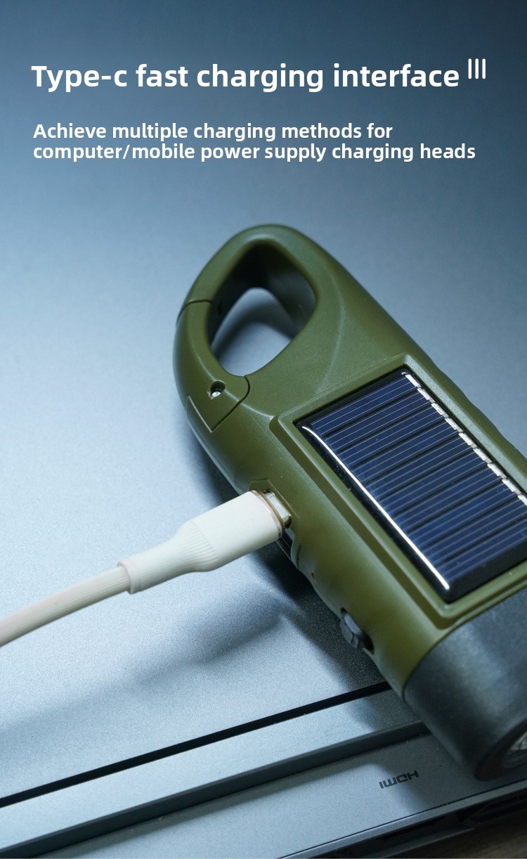 Solar & Hand-Crank Charging: Dual charging methods (solar panel + hand crank) for reliable power in emergencies.