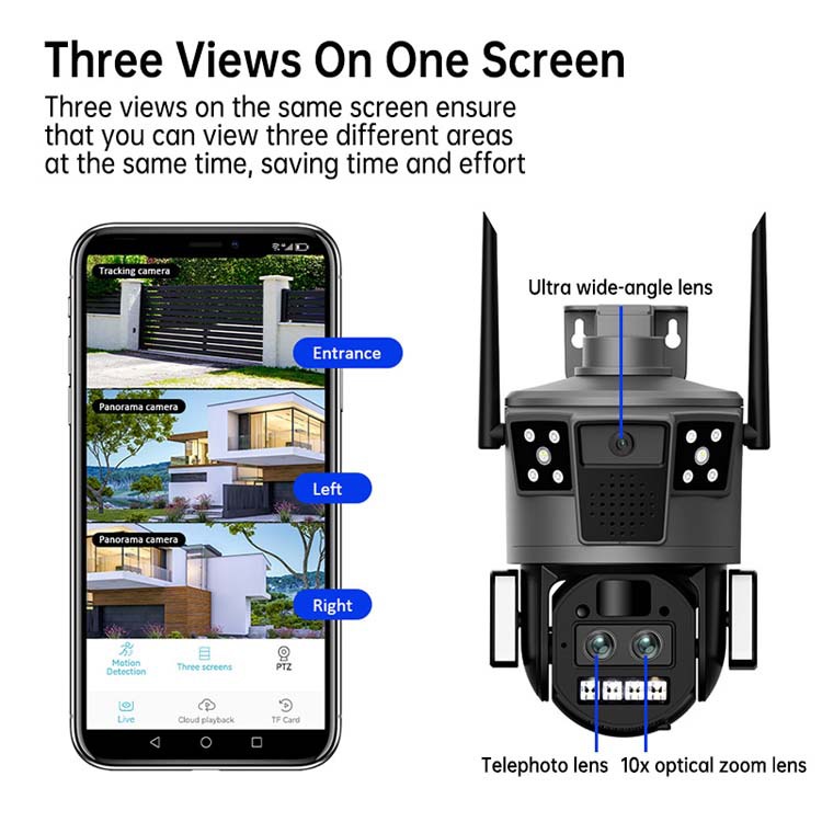 10x Zoom: High-definition 10x optical zoom for detailed surveillance.