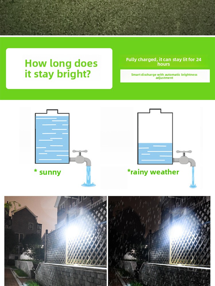Solar Powered: Eco-friendly energy source with solar panel for sustainable lighting.