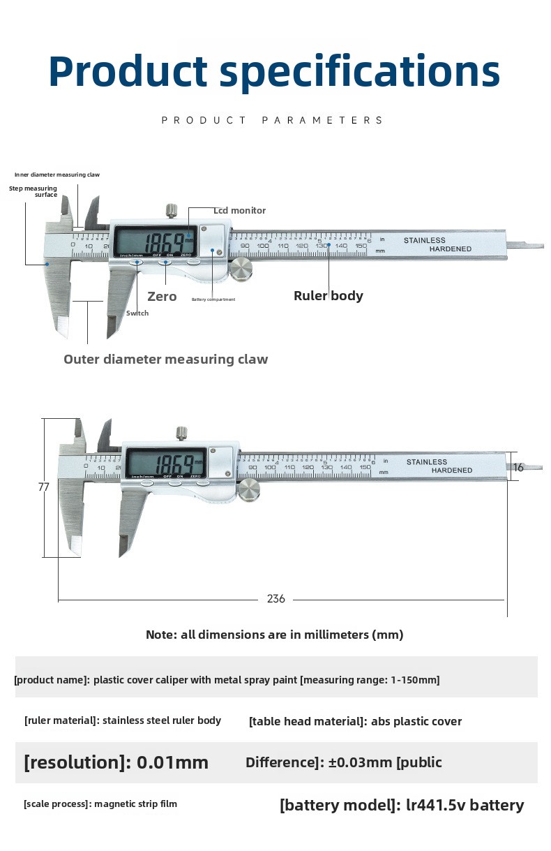 High Precision: Offers accurate measurements with a resolution of 0.01mm.