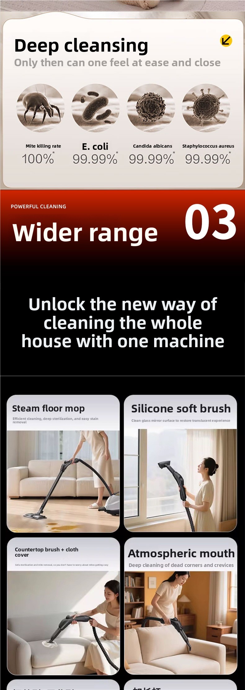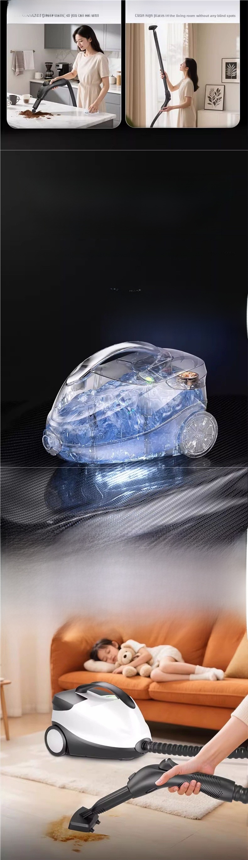 High-temperature steam: Efficient cleaning with 180? high-temperature steam for thorough sterilization and stain removal.