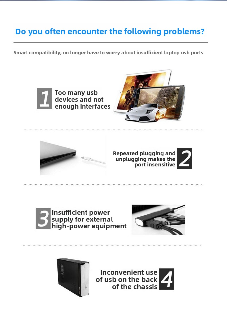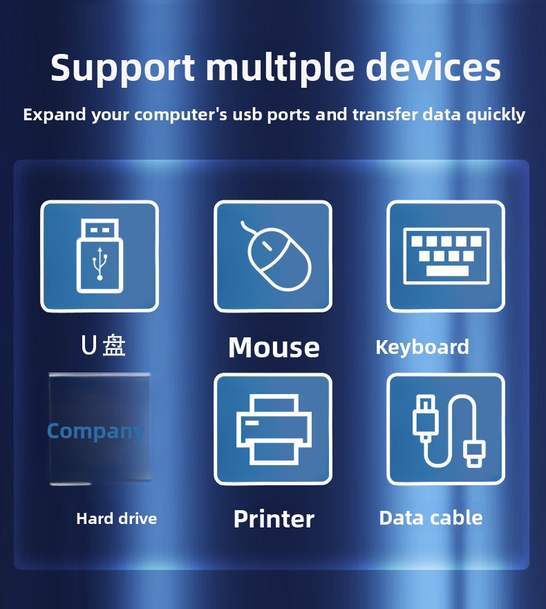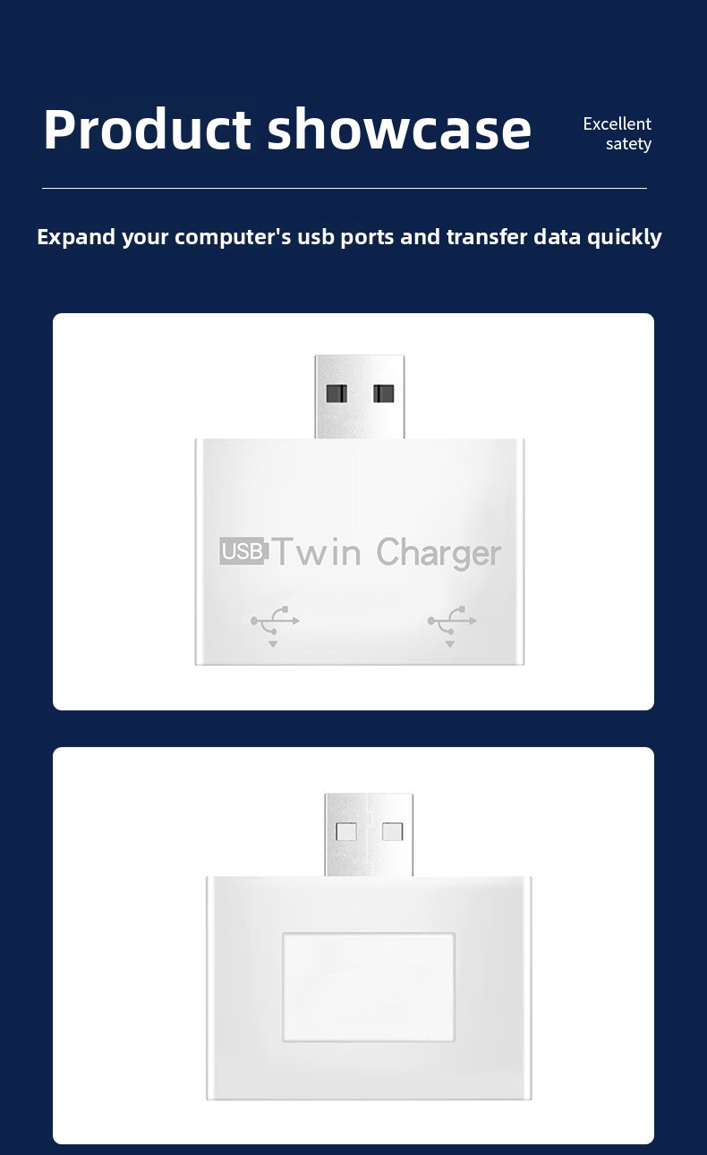 High-Speed USB Extender: Allows for efficient charging and power supply through a one-to-two port design.