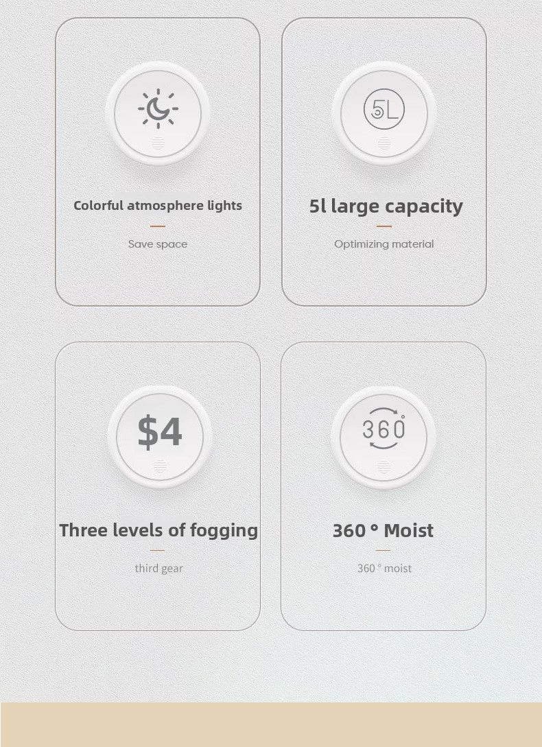 Multi-functional Design: Combines humidifier, ambient light, and aromatherapy diffuser in one device.