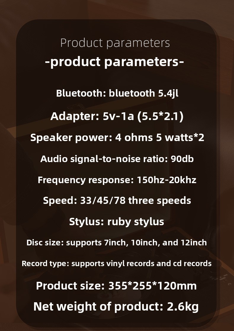 Supported Formats: Bluetooth, vinyl records, USB flash drives