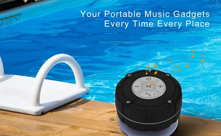 Waterproof Bluetooth Speaker with Suction Cup and Hook