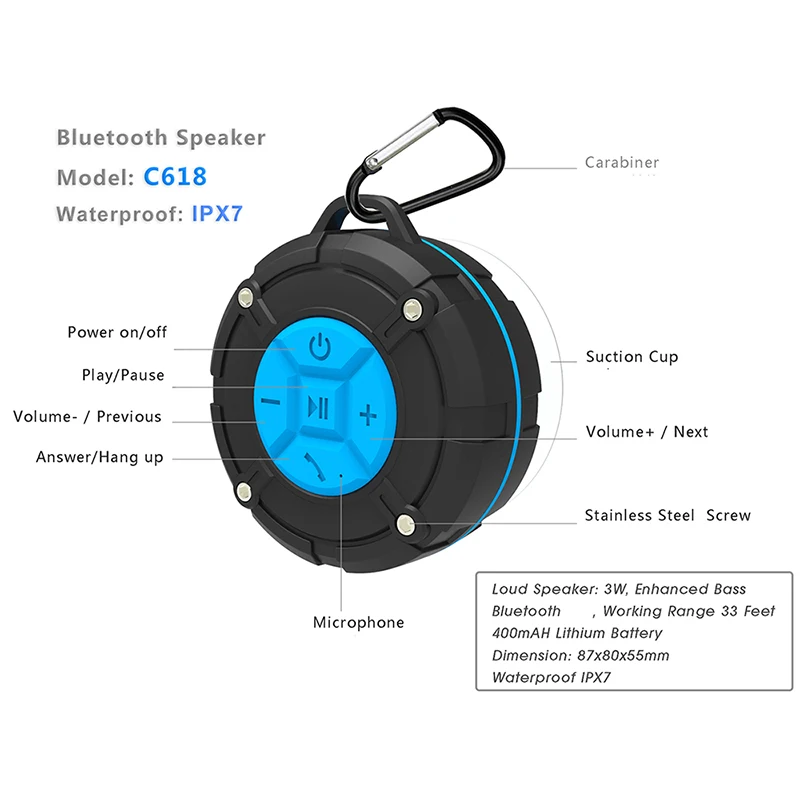 Product Name: C618 Bluetooth Shower and Outdoor Speaker