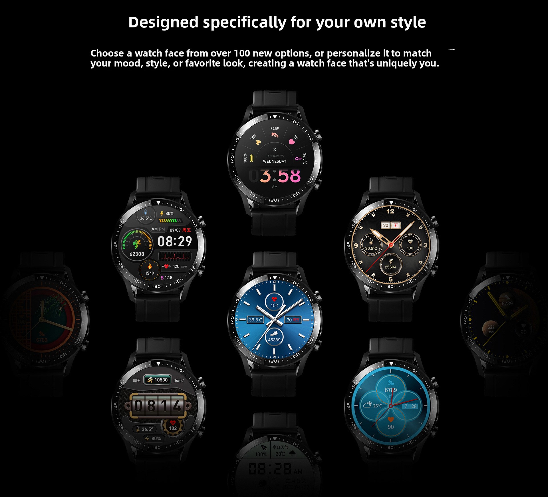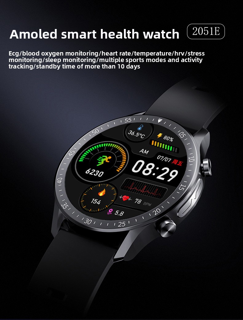 AMOLED Display: High-quality round AMOLED screen for clear visibility.