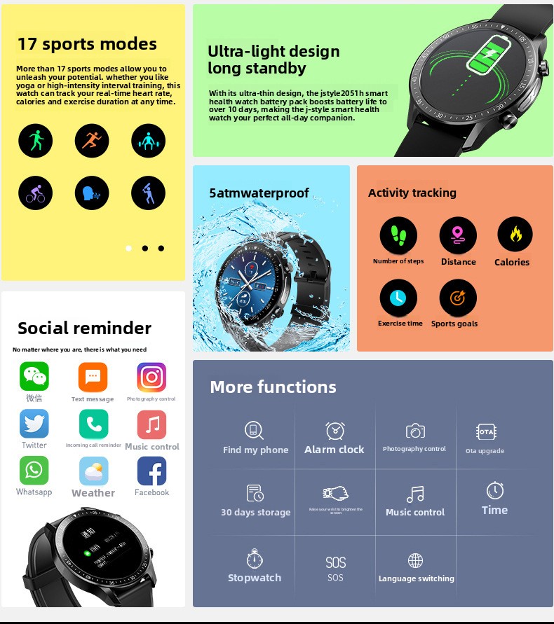 Multi-Sport Modes: Designed for various sports activities with step counting and smart reminders.