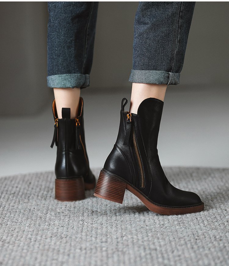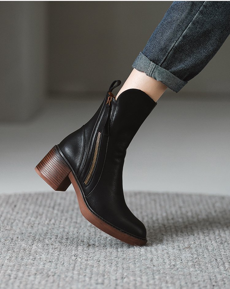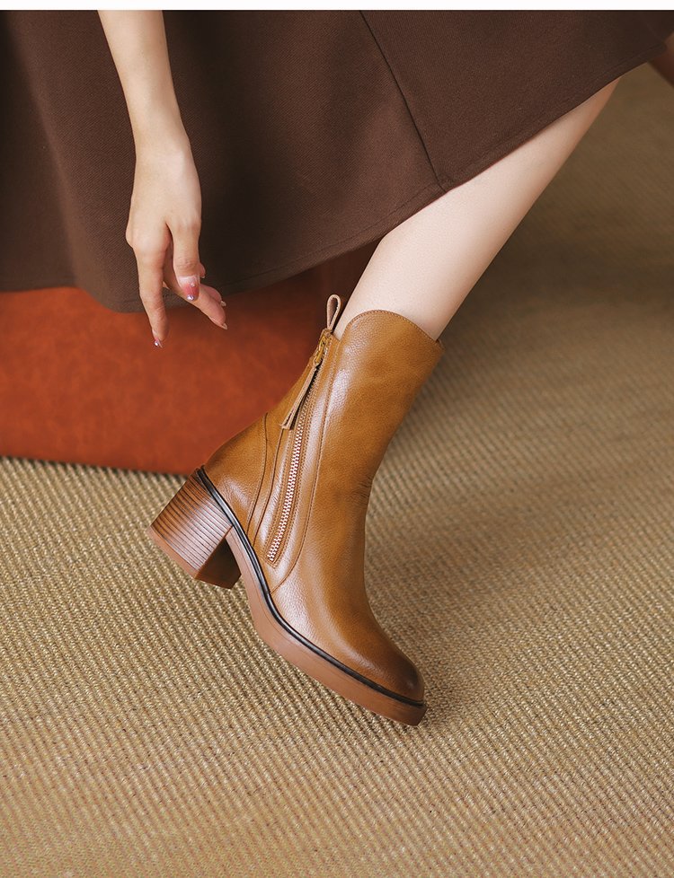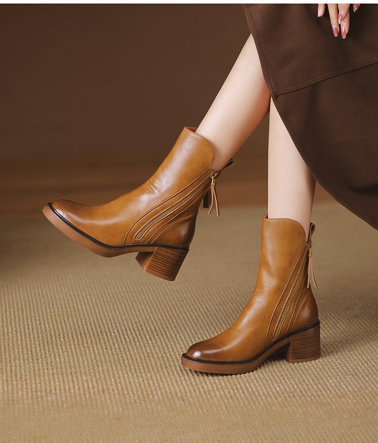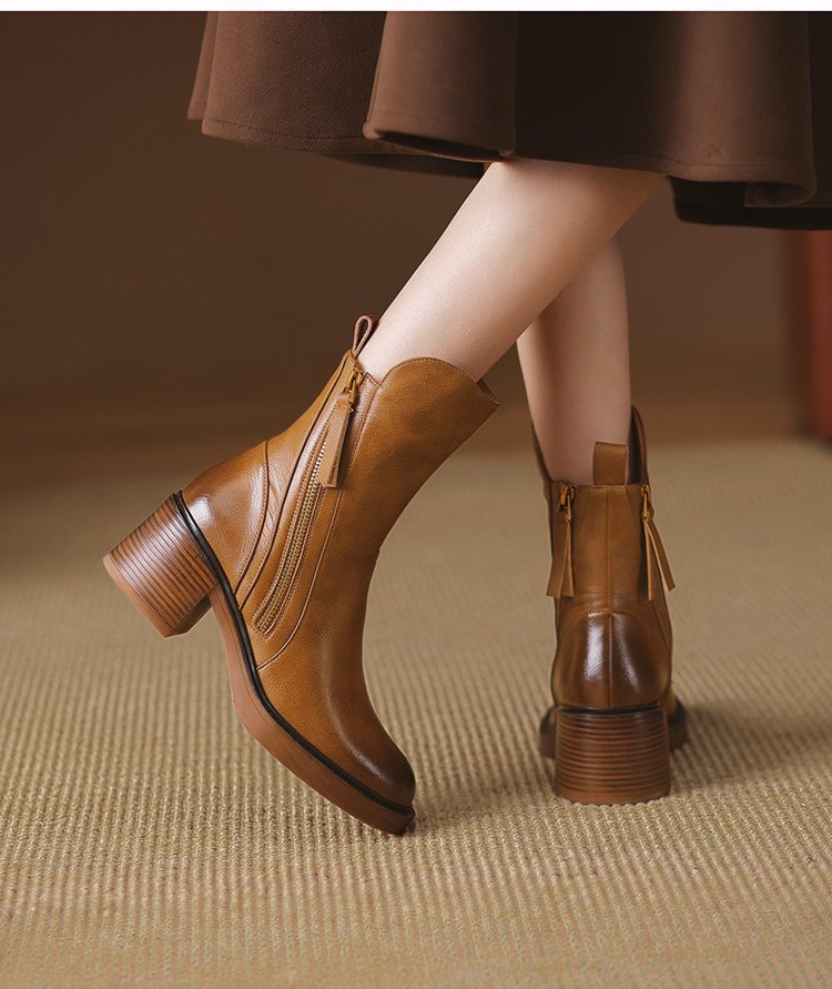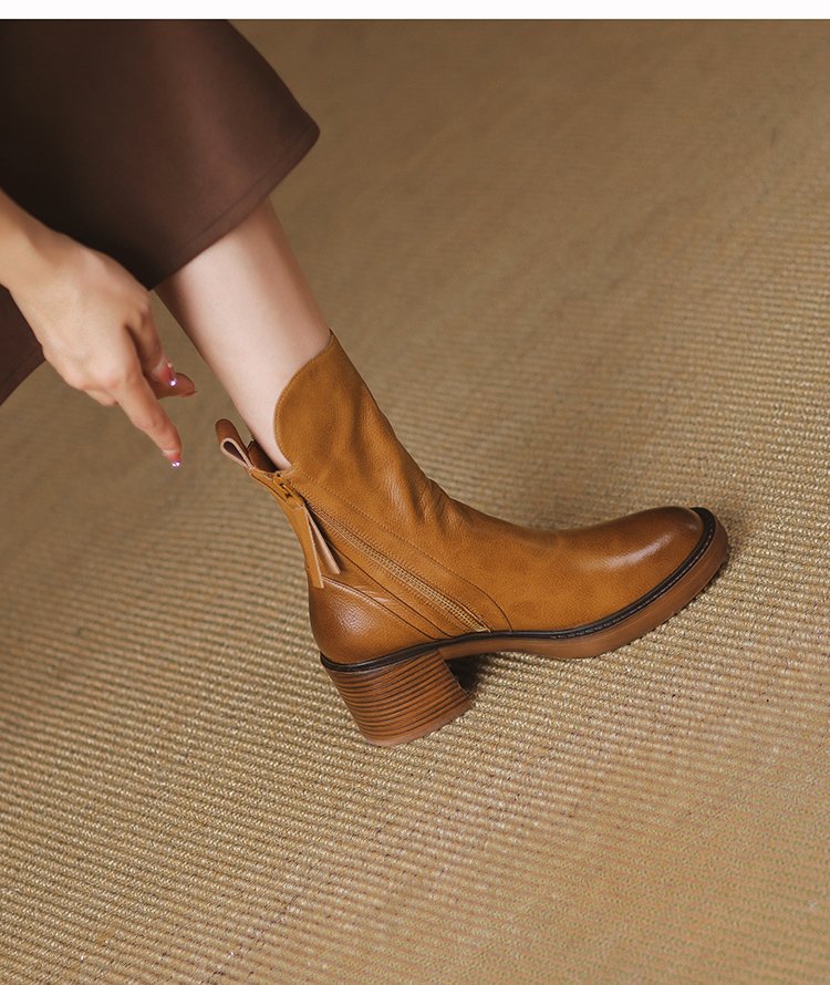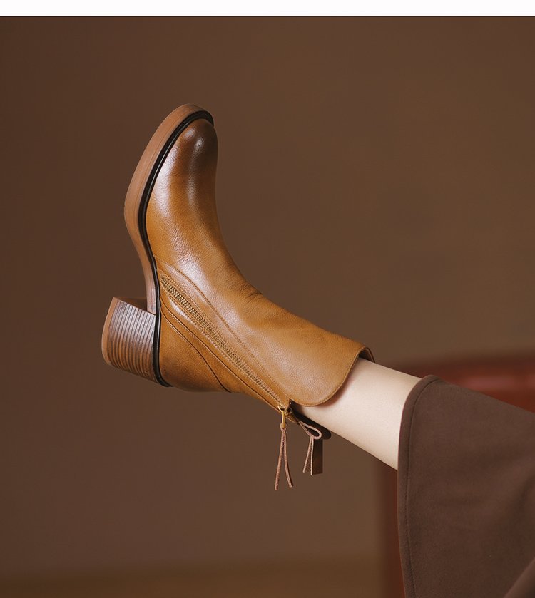 Retro Design: Vintage color and round toe for a retro aesthetic.