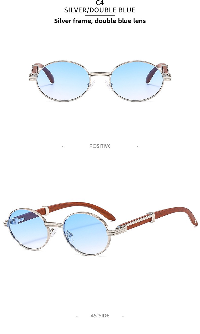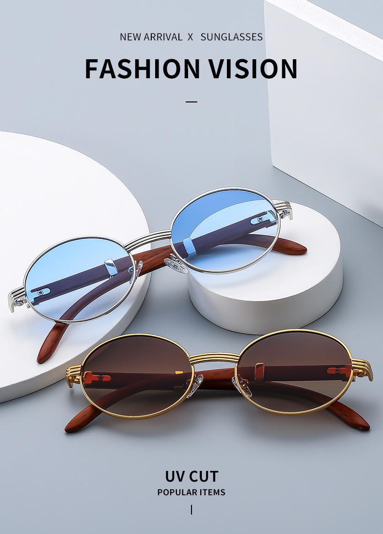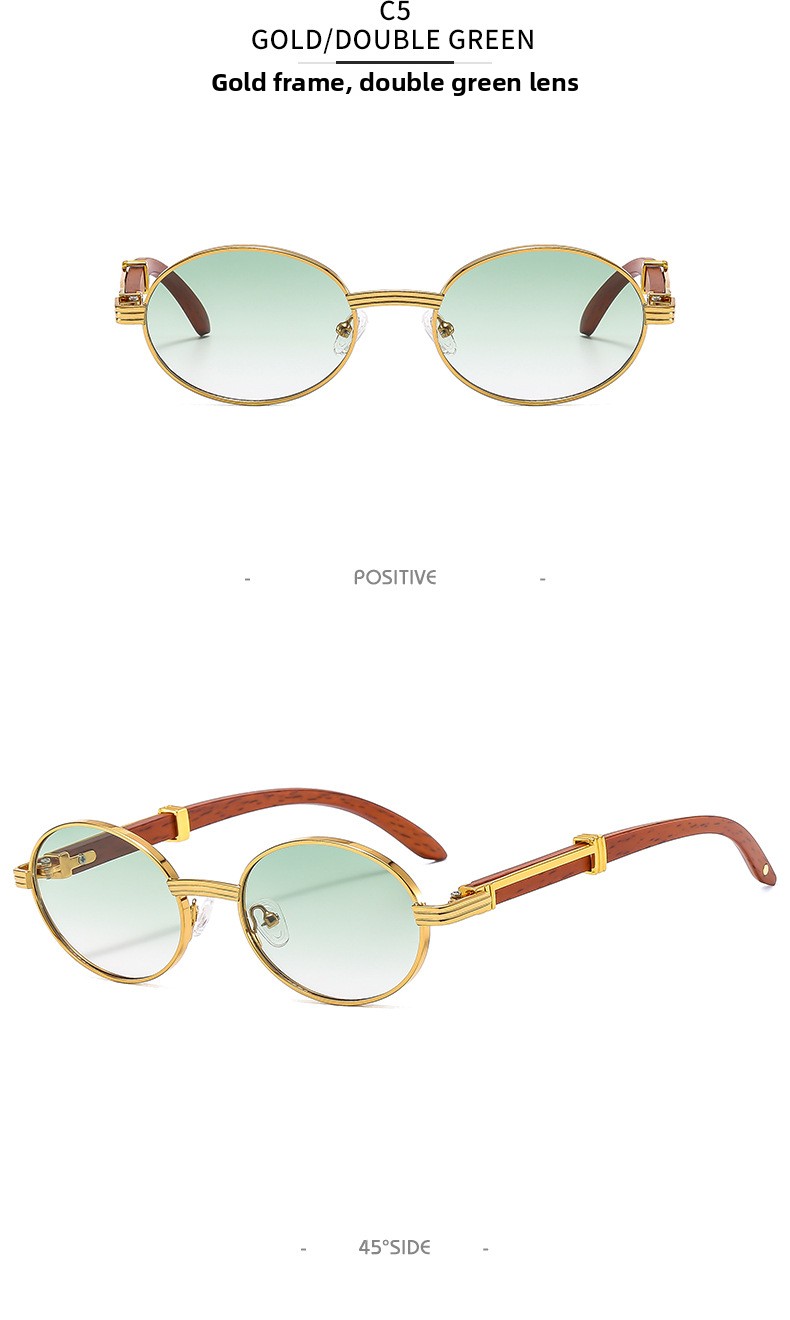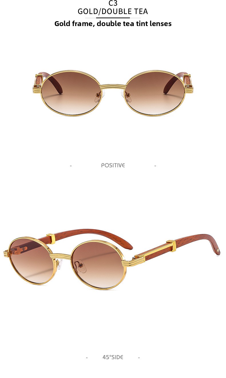Vintage Design: Retro-inspired wood grain sunglasses with a stylish oval shape.