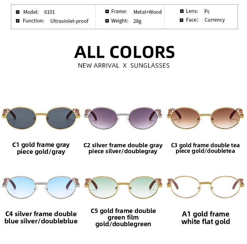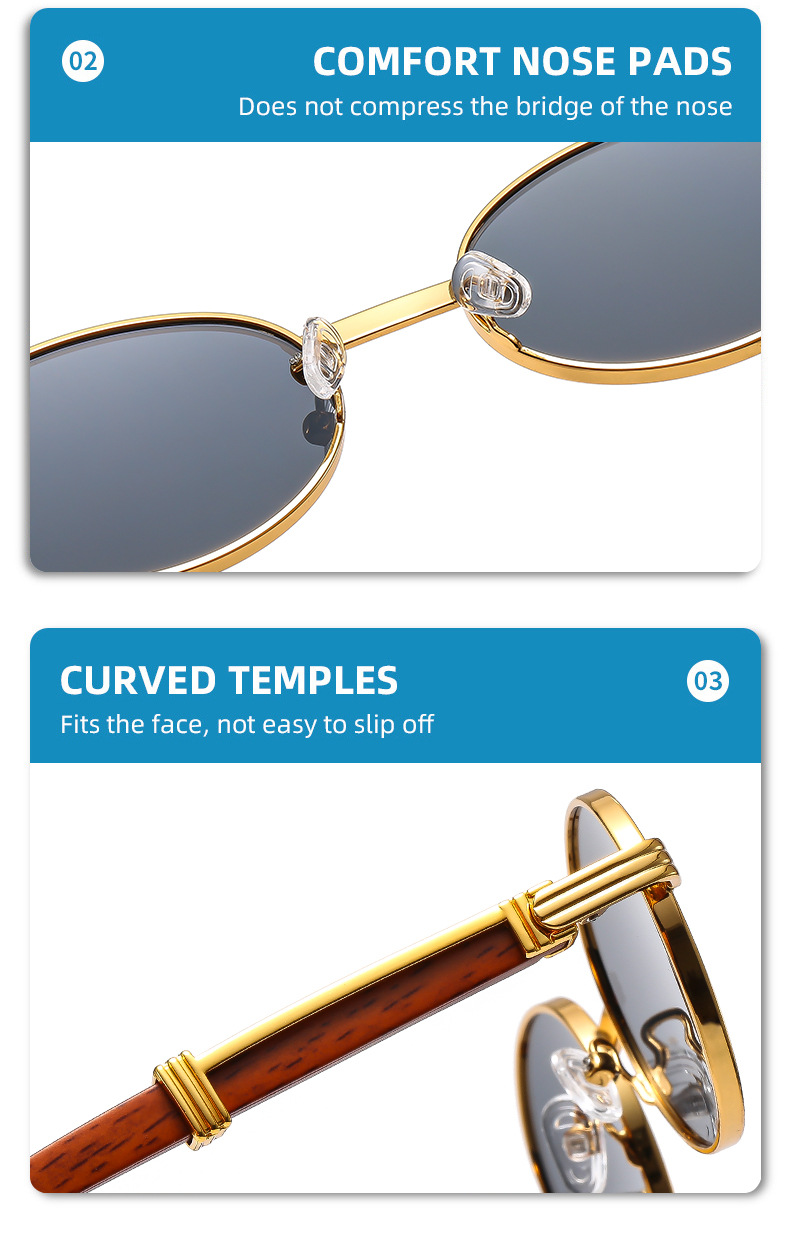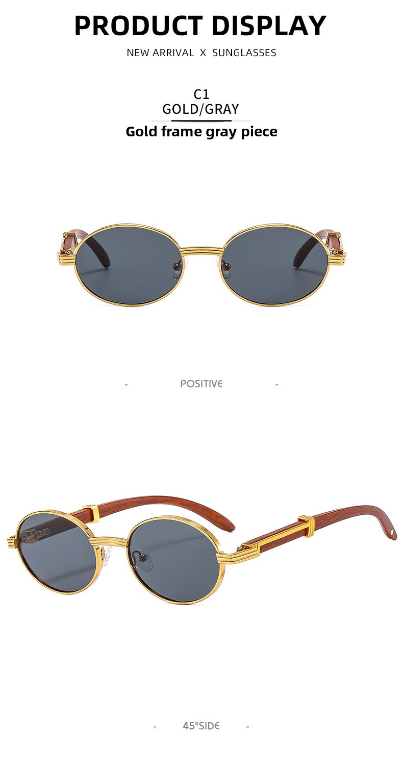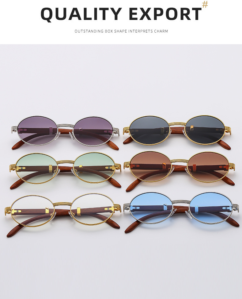 Vintage Design: Retro-inspired wood grain sunglasses with a stylish oval shape.